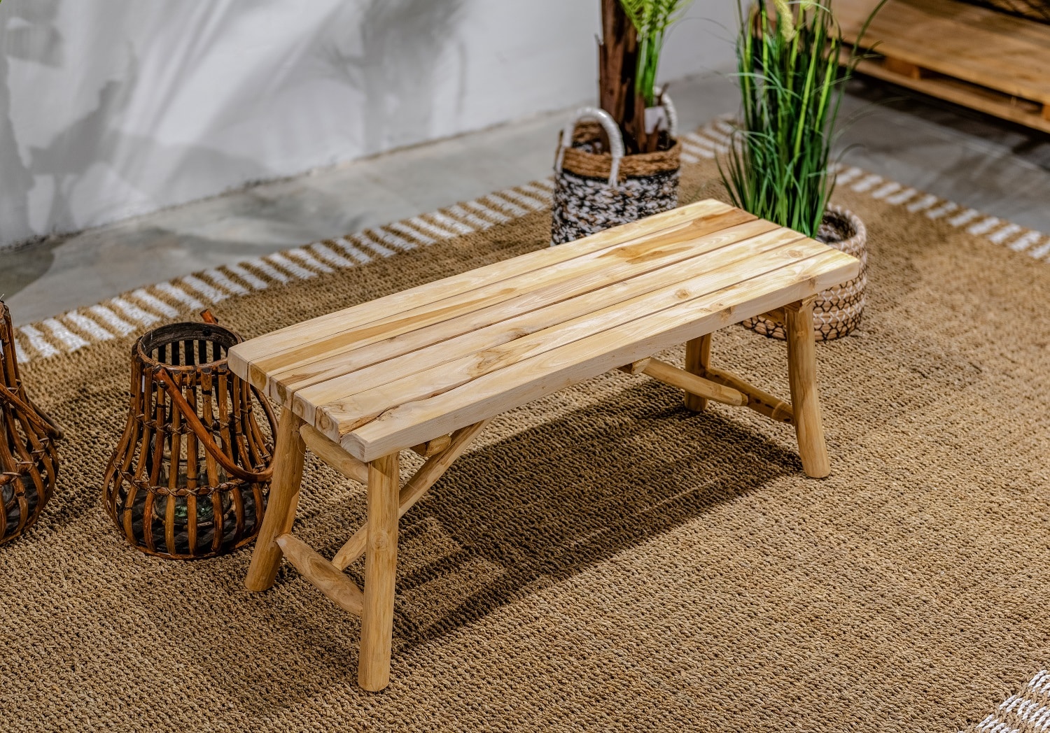 ספסל בסגנון נורדי / סקנדינבי מעץ טיק בגימור ראסטיק.