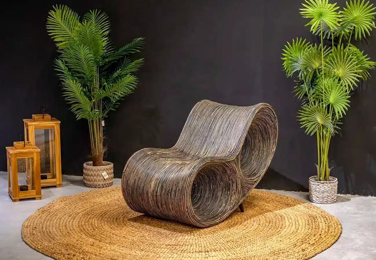 ספת יחיד מעוצבת הבנויה מראטן טבעי בגימור שחור ווש תוצרת אינדונזיה.