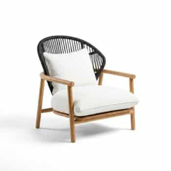 הכורסא בנויה מעץ טיק בשילוב חבלים סינתטיים איכותיים.