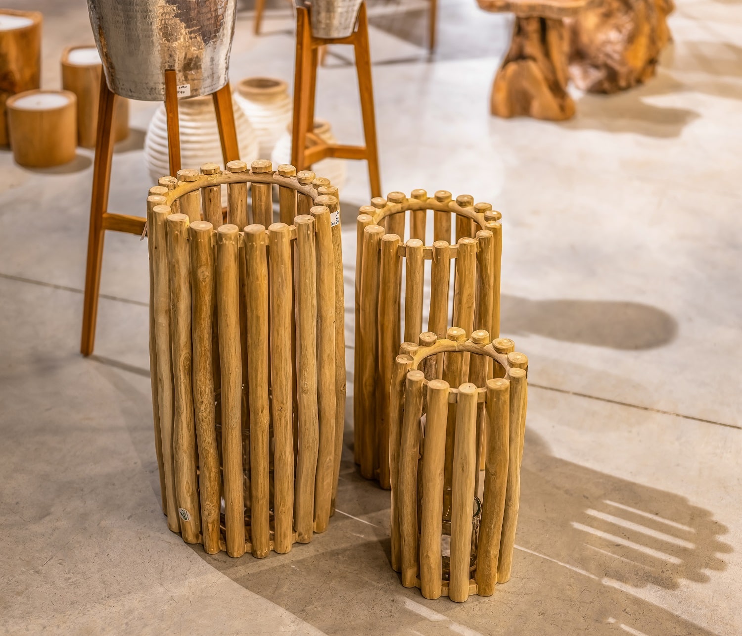 העששיות בנויות מענפי טיק, תוצרת אינדונזיה.