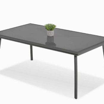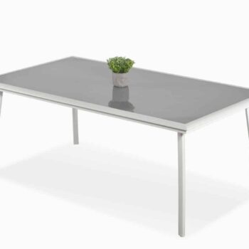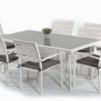שולחן אלומיניום מחוזק דגם ברצלונה במידה 180X100 ס”מ בשילוב 6 כיסאות מדגם אוליבר.