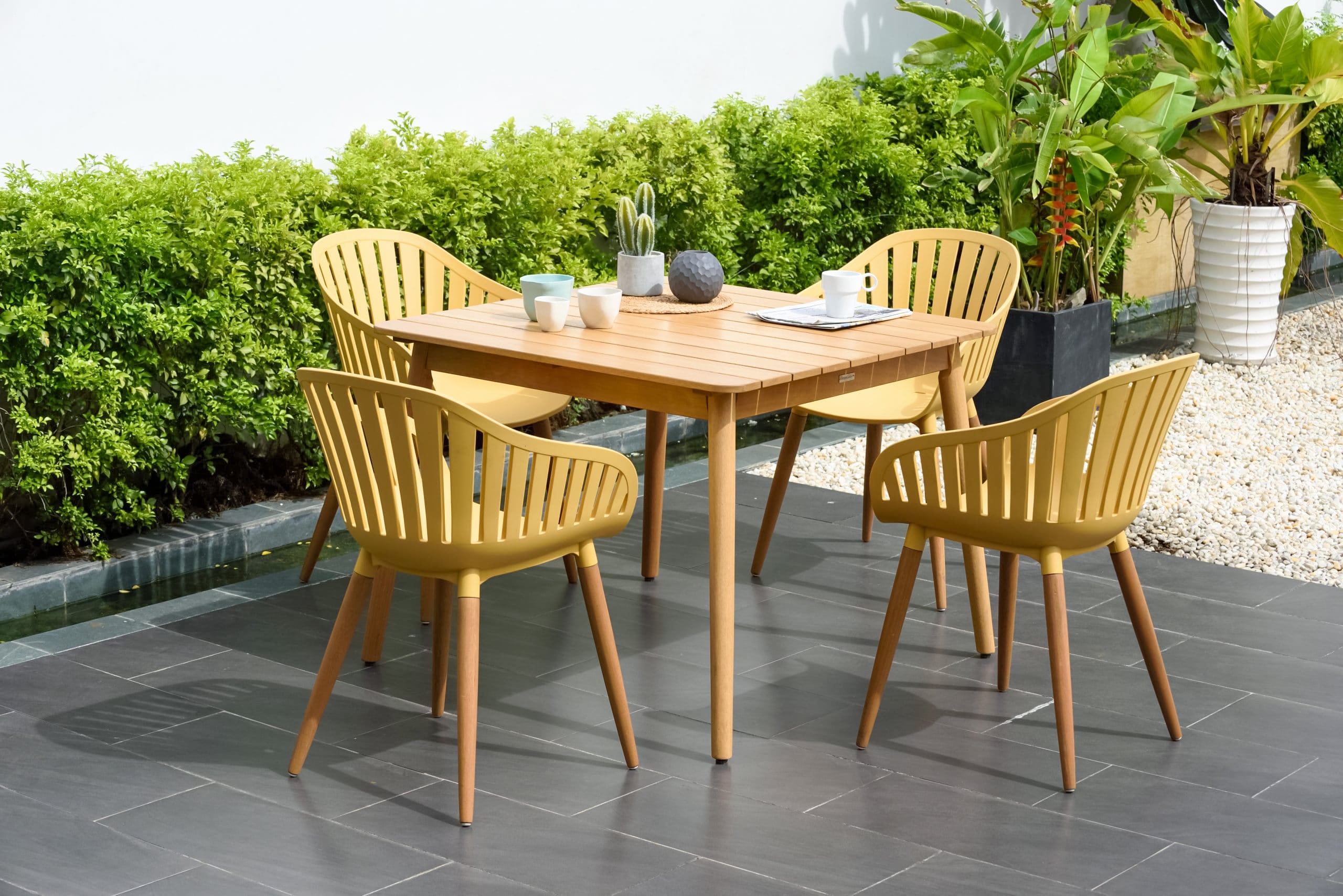 הסט כולל שולחן מרובע 97*97 ס”מ + 4 כיסאות נסאו.