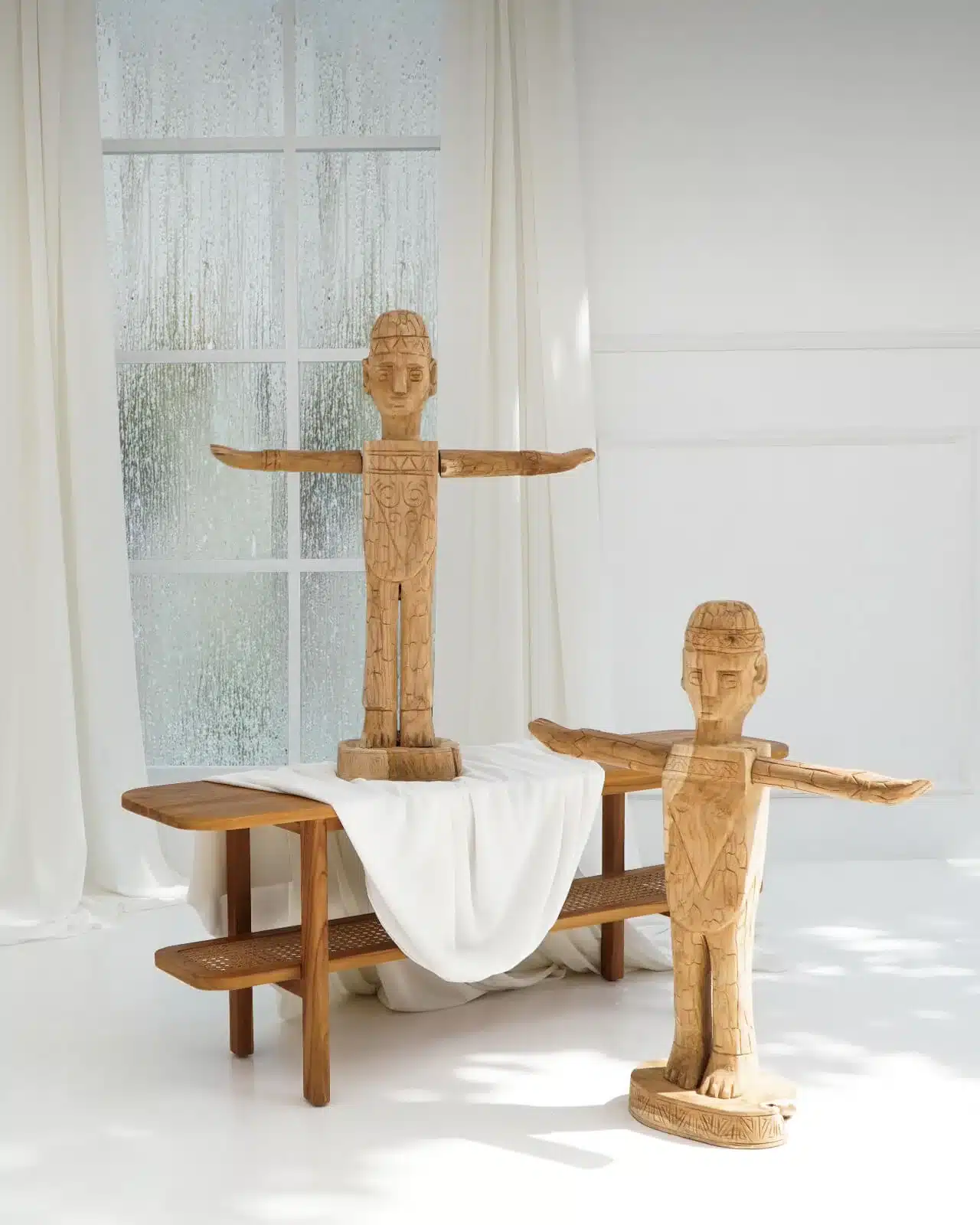 הפסל בנוי מעץ טיק אינדונזי בעבודת יד.
