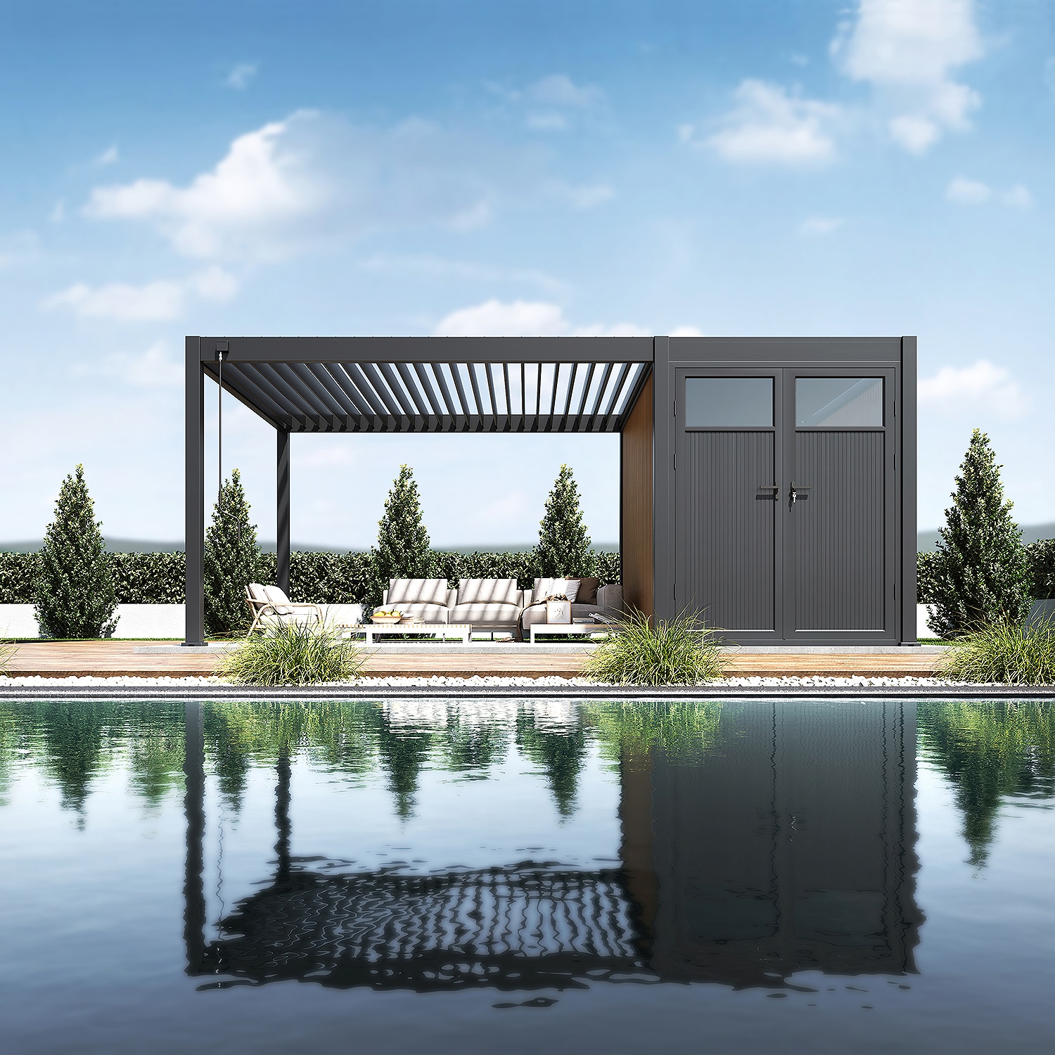 פרגולה חזקה ועמידה במיוחד הבנויה מאלומיניום, בשילוב PU (פנל מוקצף).