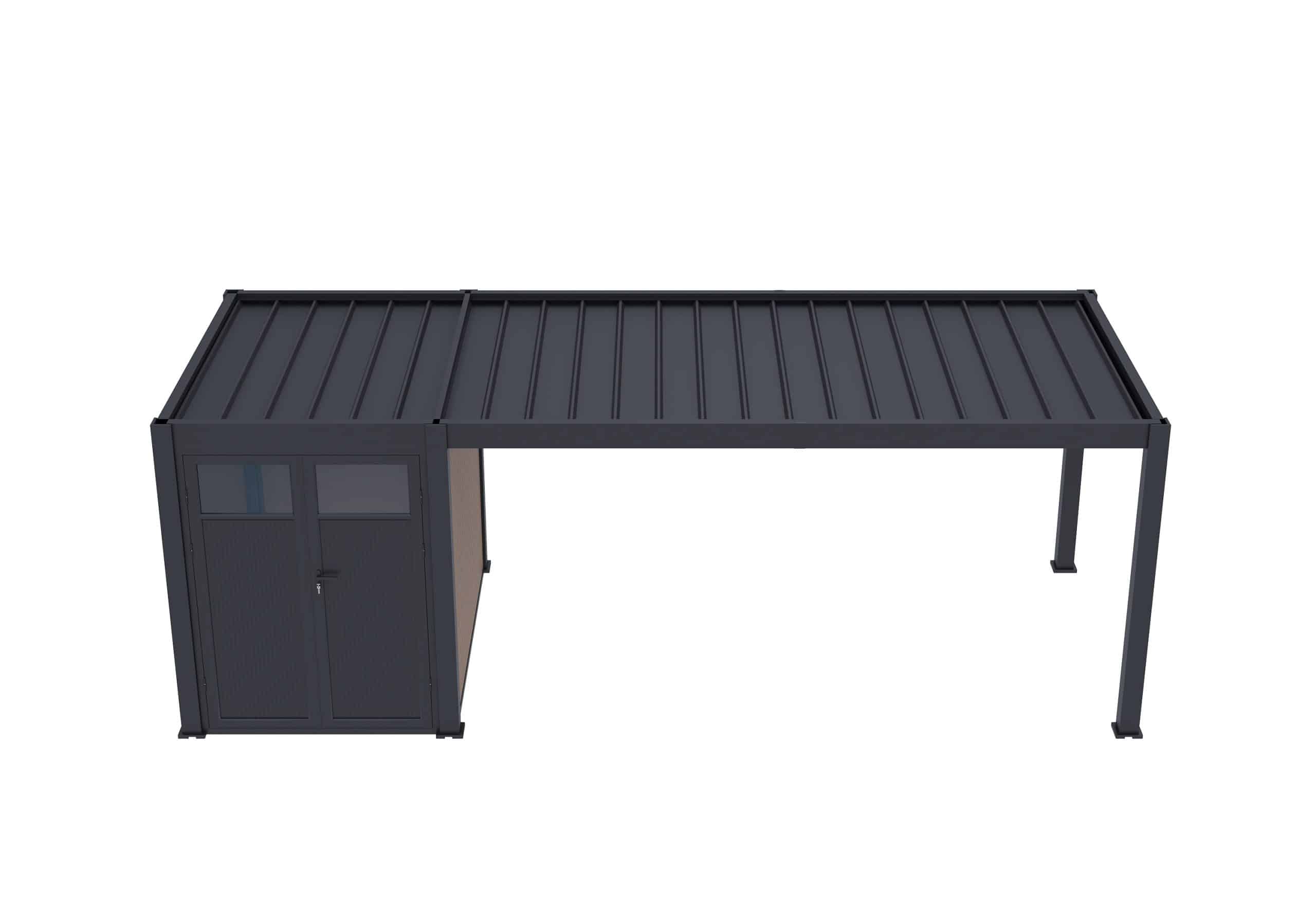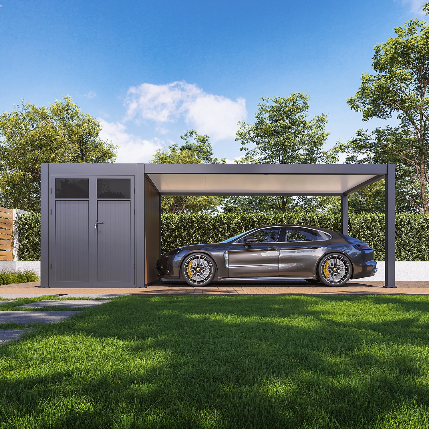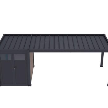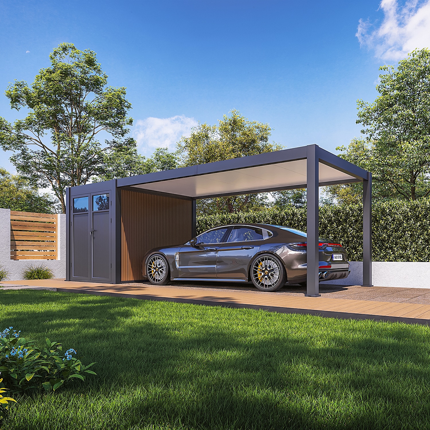 פרגולה אלומיניום מאסיבית במיוחד אשר משמשת כחנייה לרכב / הצללה לכל מטרה + מחסן.