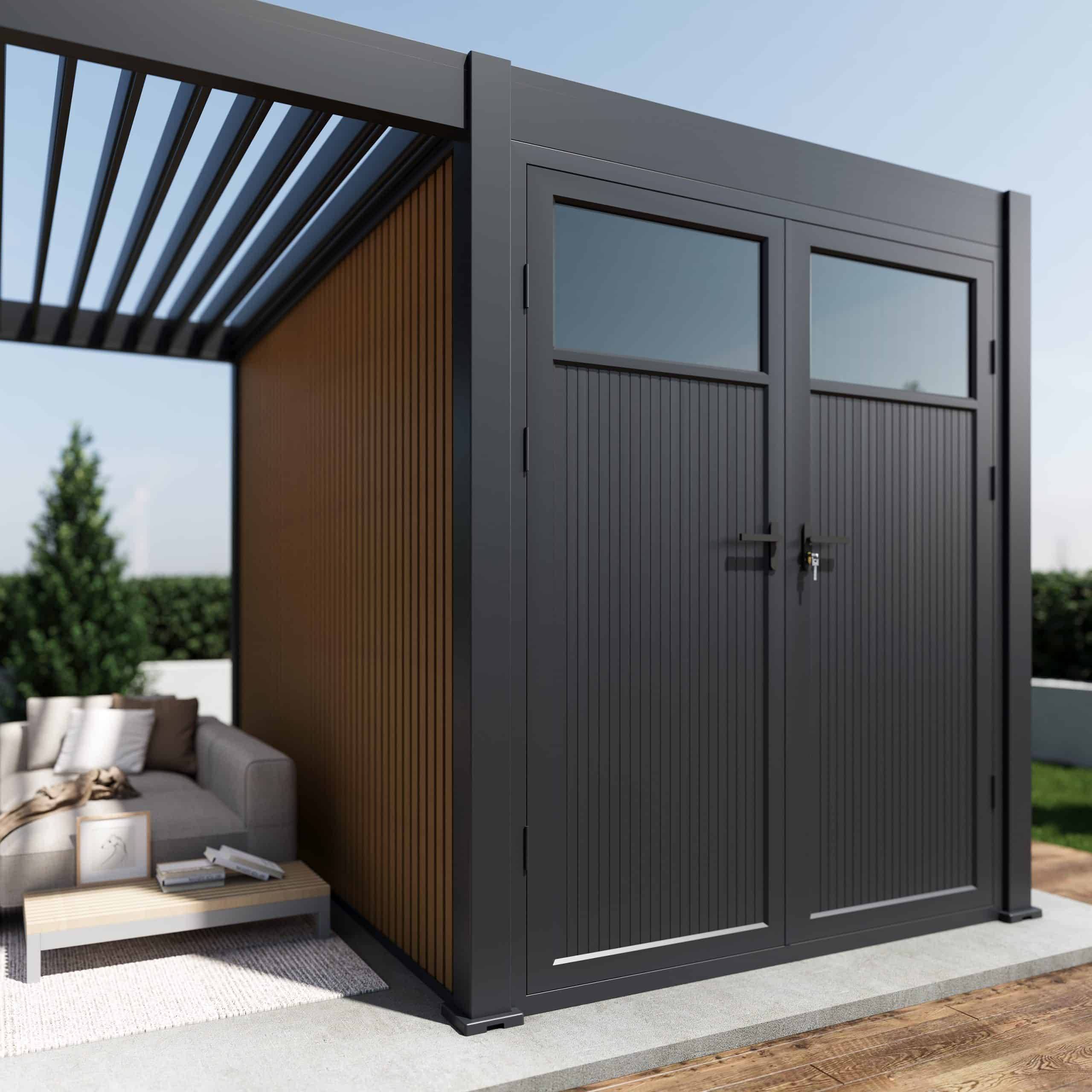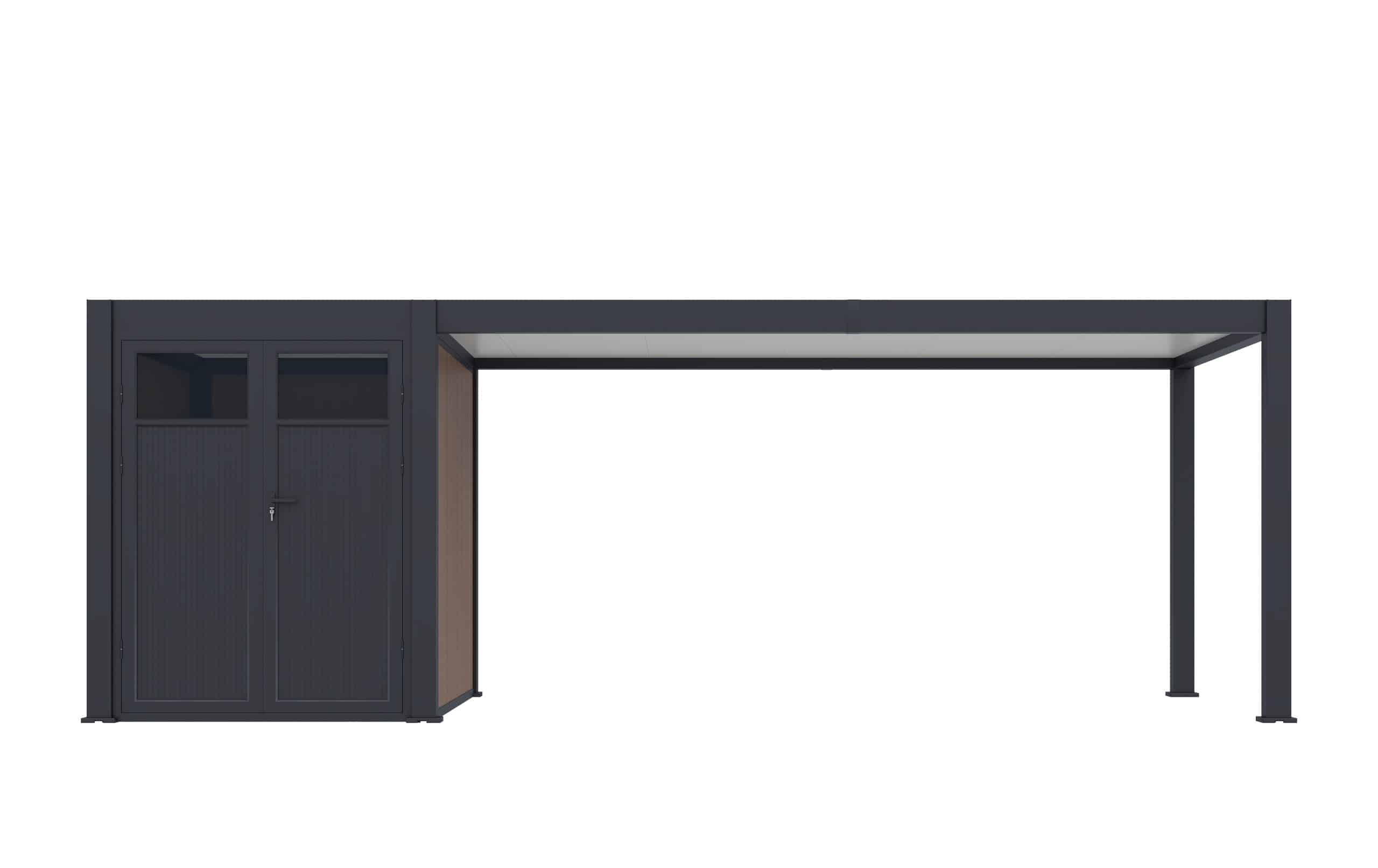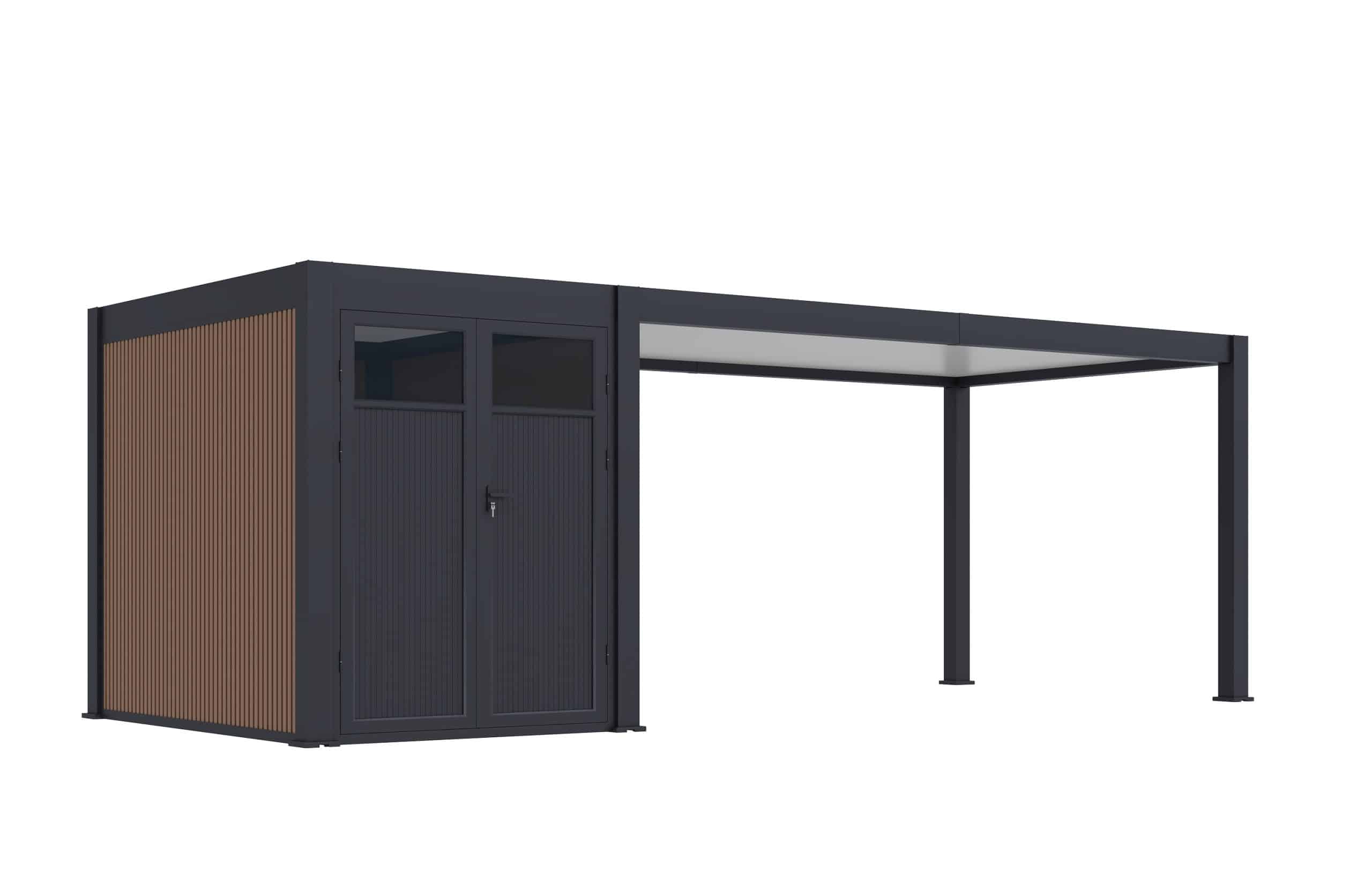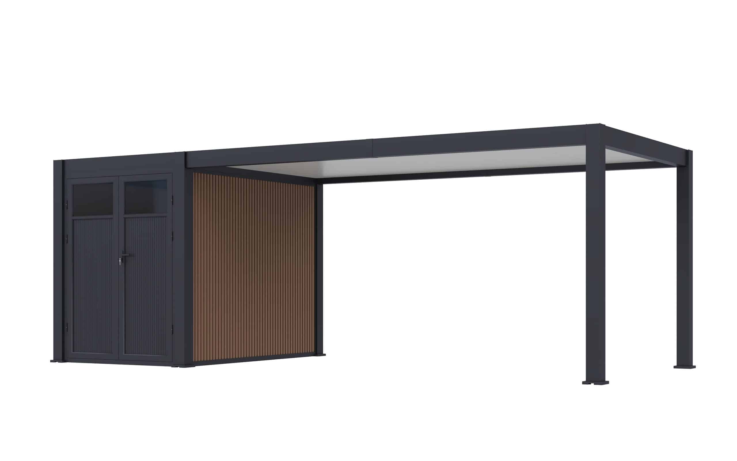 פרגולה אלומיניום מאסיבית במיוחד אשר משמשת כחנייה לרכב / הצללה לכל מטרה + מחסן.