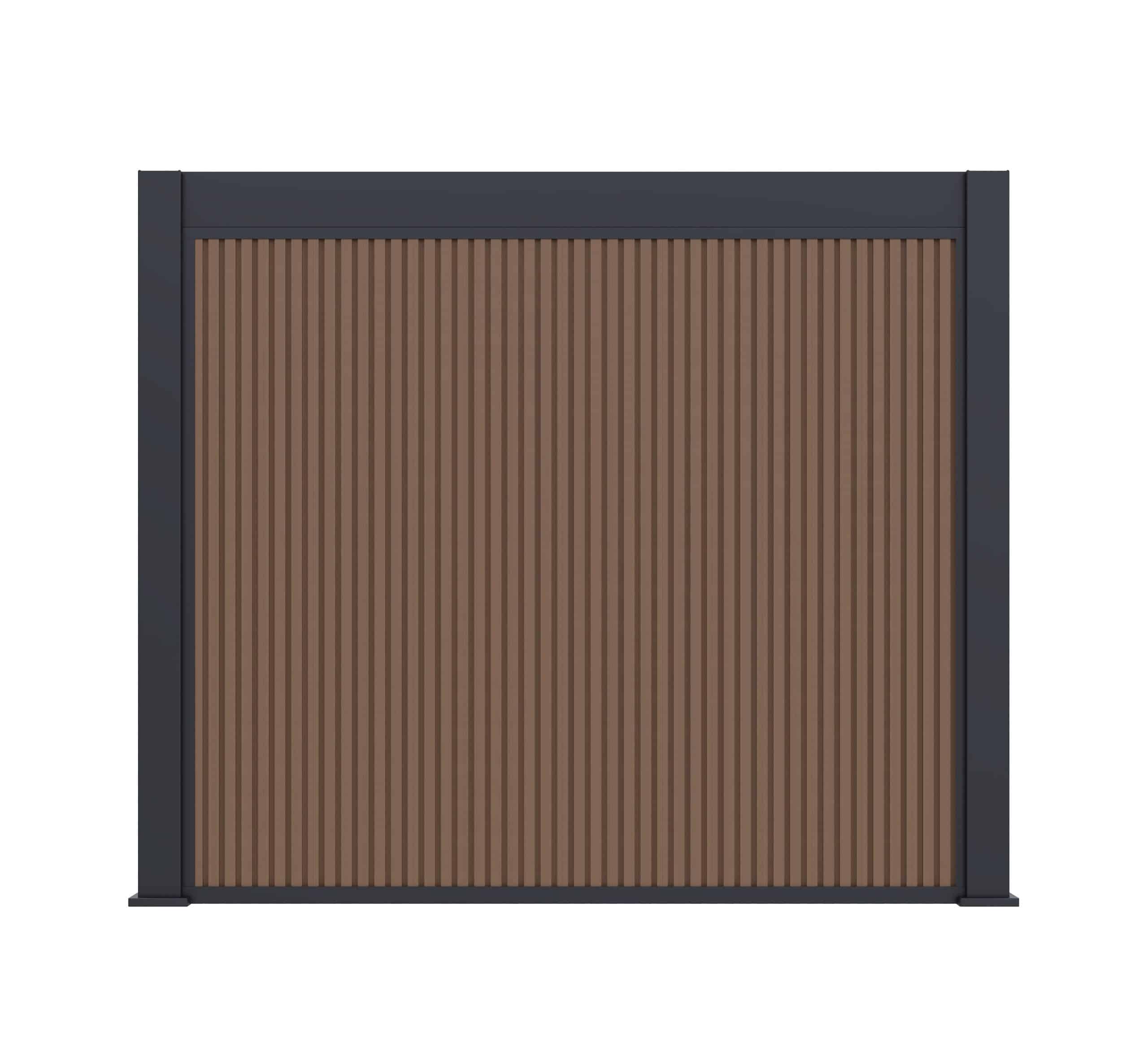 קיר המחסן בנוי מאלומיניום בחיפוי לוחות דמוי עץ WPC עמידים למזג האוויר.