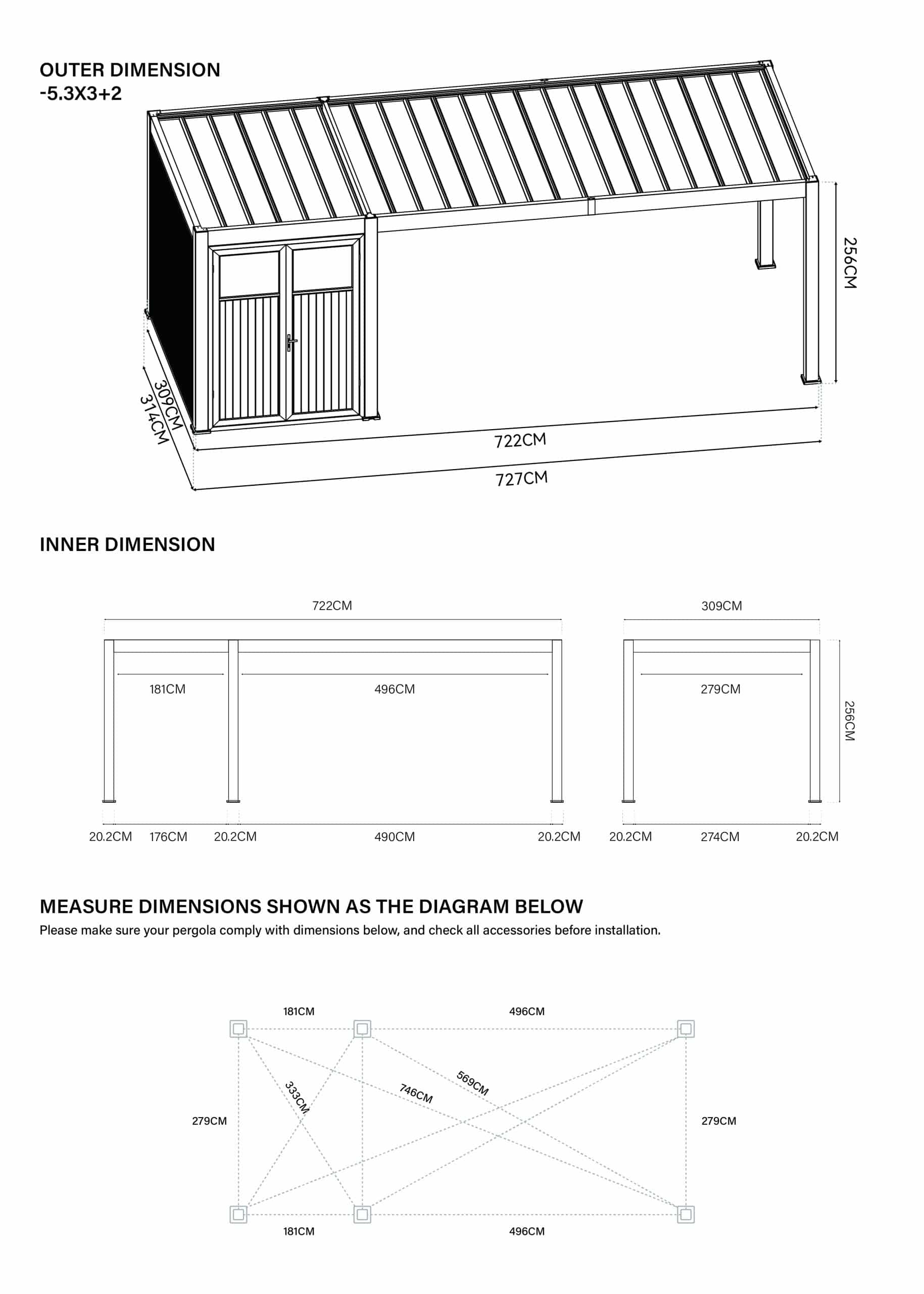 5.3*3+2 מטר, מצורפת תמונה עם פירוט מידות מלא.