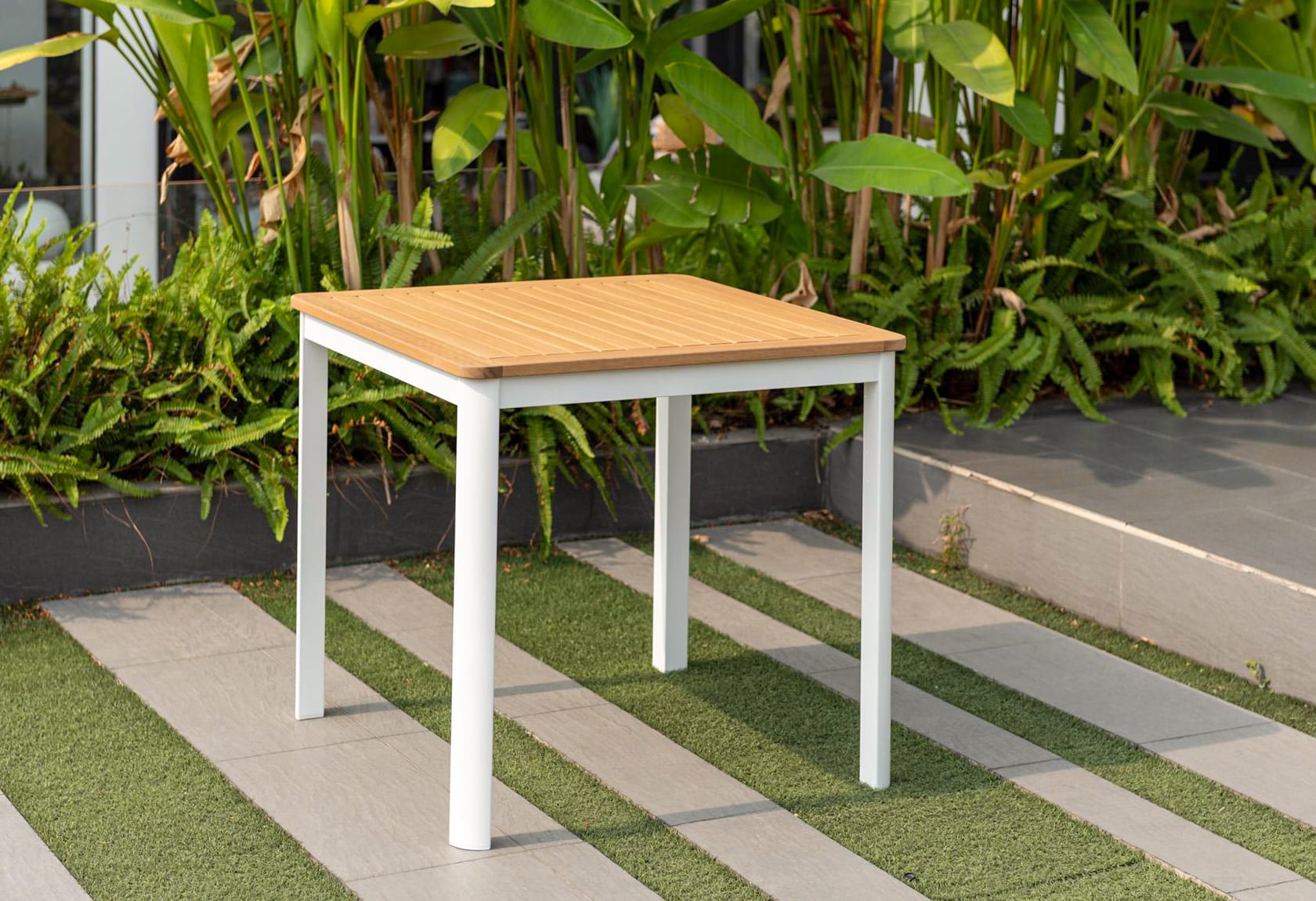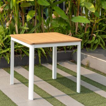 שולחן מעוצב בעל קימורים מחמיאים הבנוי משלדת אלומיניום “אל חלד” בשילוב עץ אקליפטוס מלא.