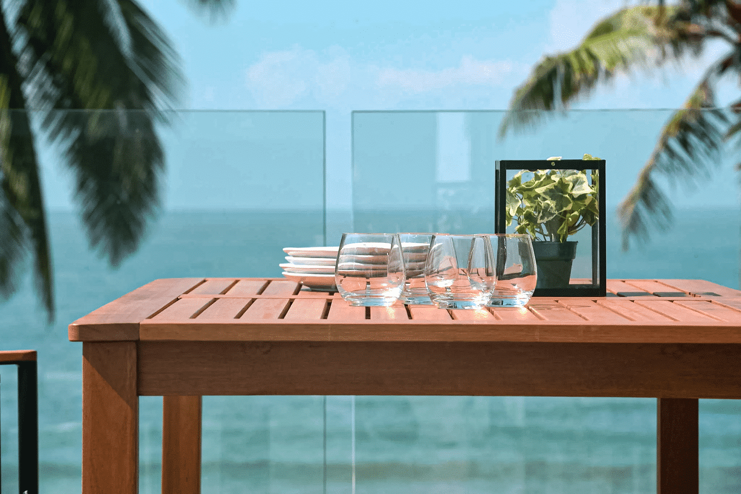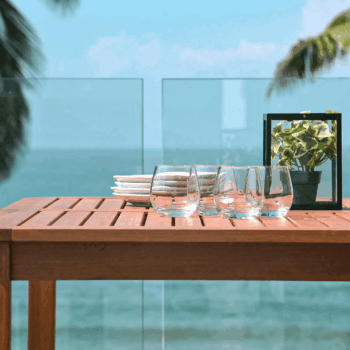 השולחן בנוי מעץ אקליפטוס מלא.