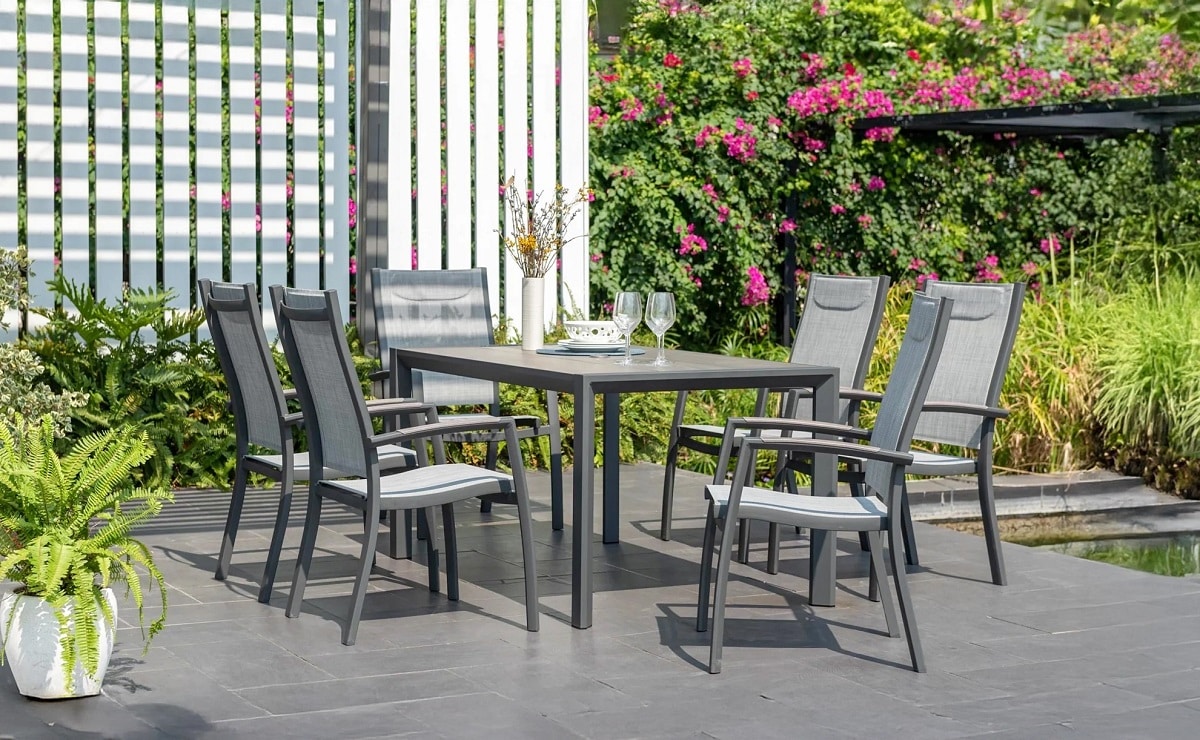 פינת אוכל לגינה מדגם אורבן 160 עם 6 כיסאות פנמה.