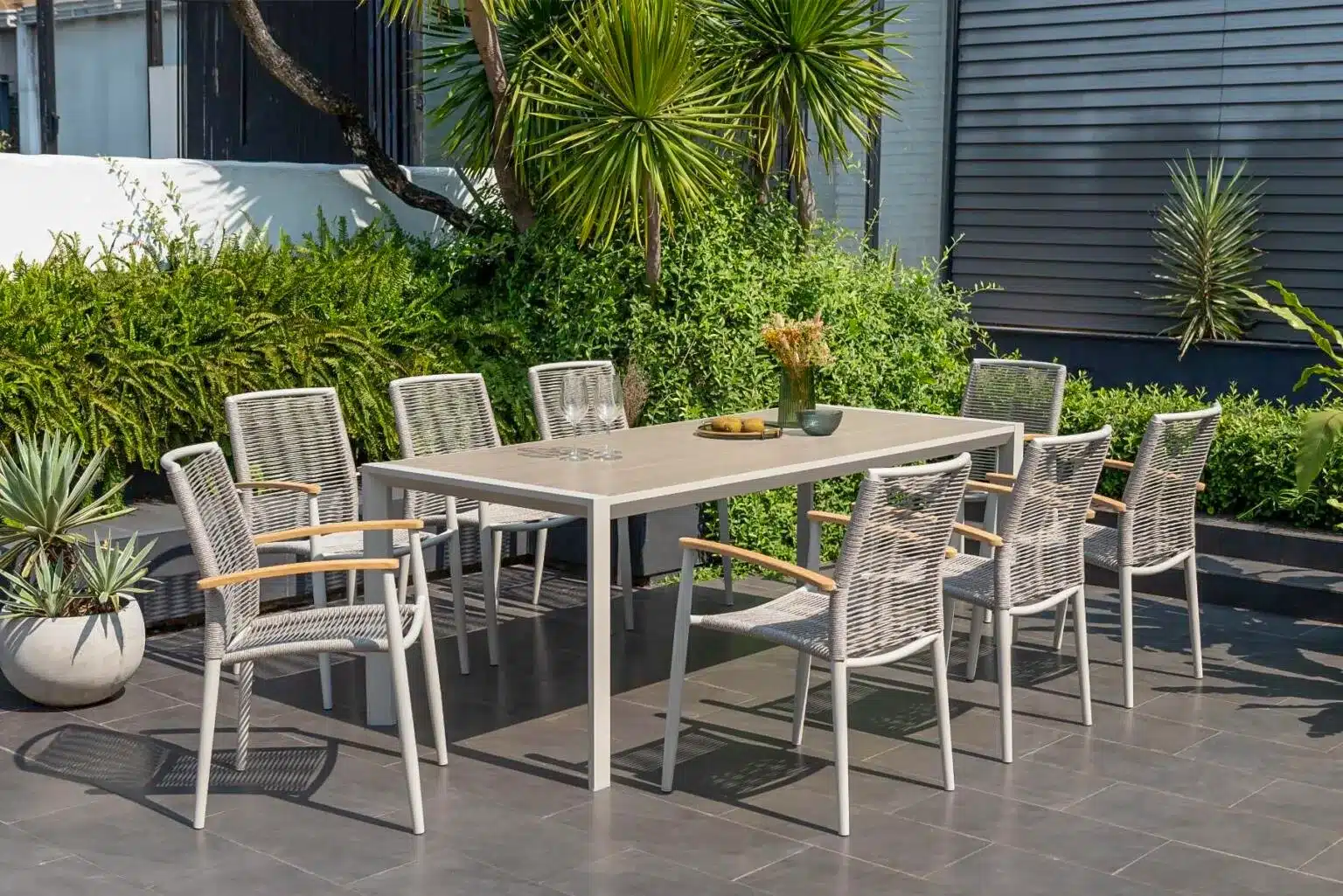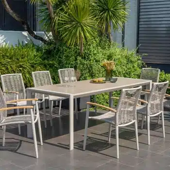 פינת אוכל לגינה מדגם אורבן 207 עם 6 כיסאות טופז חבלים.