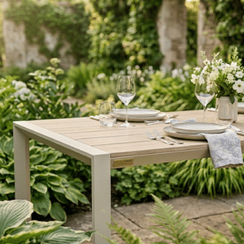 שולחן אוכל לגינה דגם אורבן: עיצוב מודרני, עמידות מקסימלית.