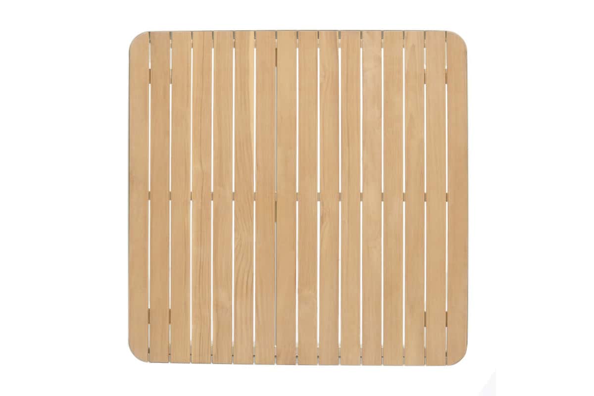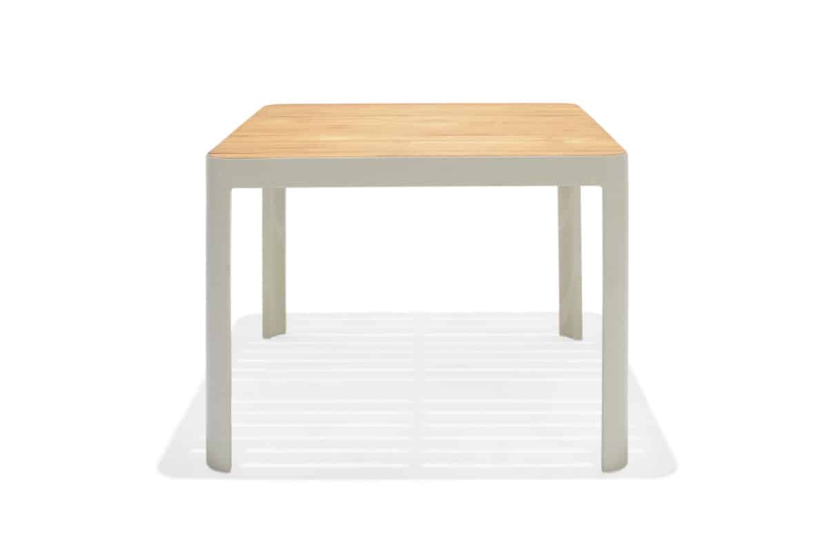 שולחן אלומיניום “אלד חלד” בשילוב לוחות עץ טיק אינדונזי.