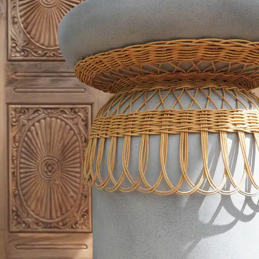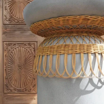 עשוי מתרכובת בטון חזקה בשילוב קישוט שזירה מראטן טבעי.