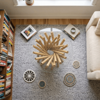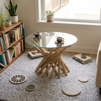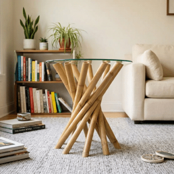 שולחן אוכל מגניב במיוחד מבמבוק טבעי בשילוב זכוכית מחוסמת.