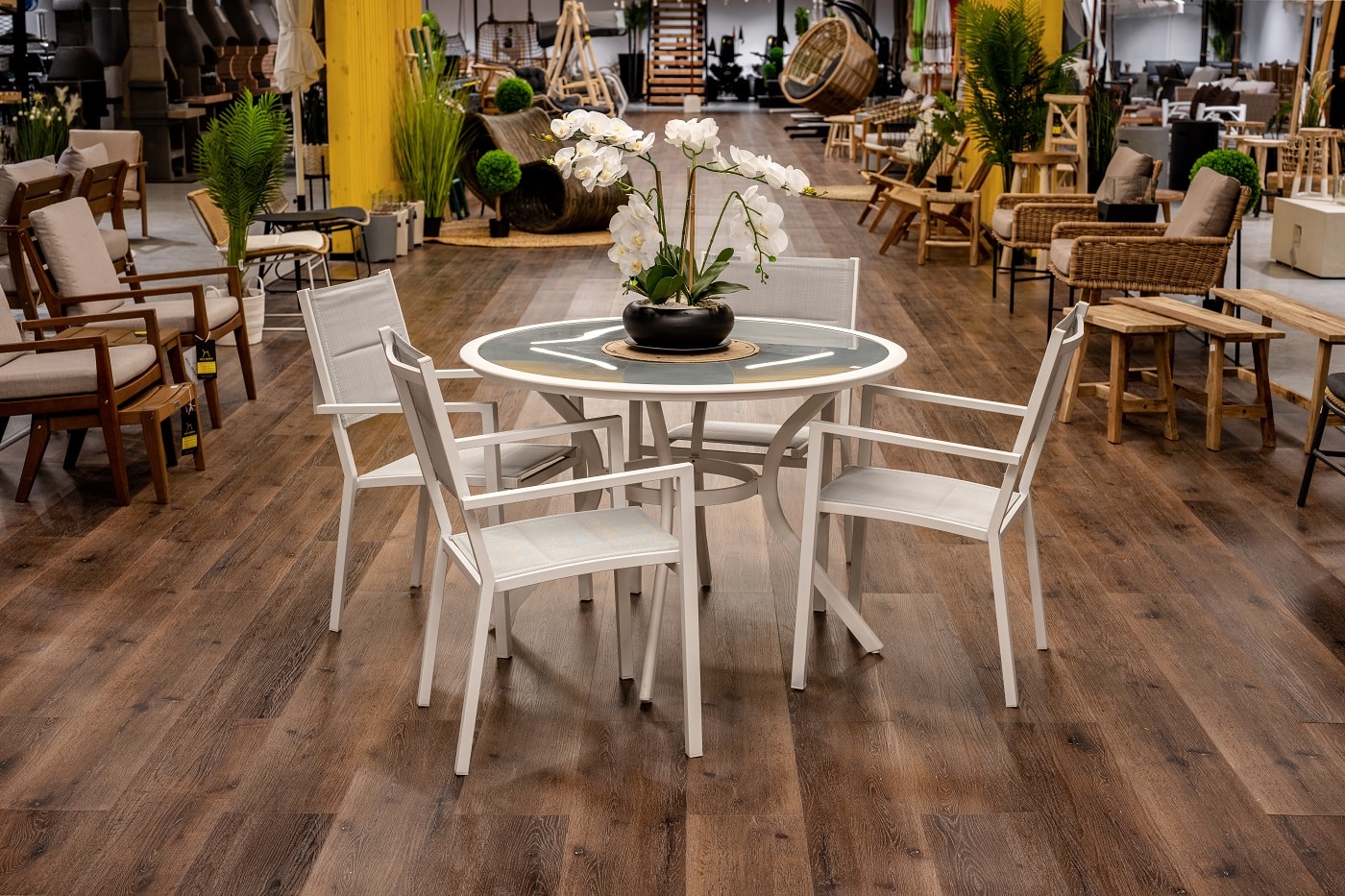 שולחן ברצלונה עגול בקוטר 109 ס”מ בשילוב 4 כיסאות מדגם מייפר.