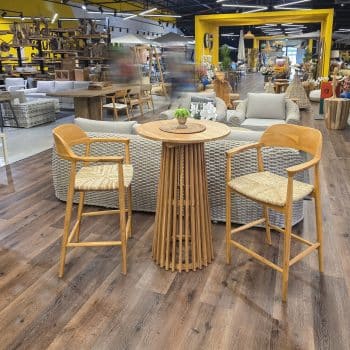 שולחן בר מעוצב דגם קנטנה בשילוב זוג כיסאות קנדי.
