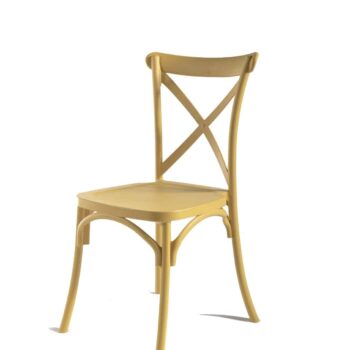 כיסא פלסטיק מעוצב עשוי פלסטיק קשיח ומסיבי.