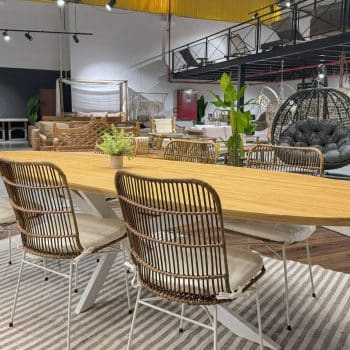 שולחן אובאלי מרשים אשר מתאים גם לשימוש חוץ.