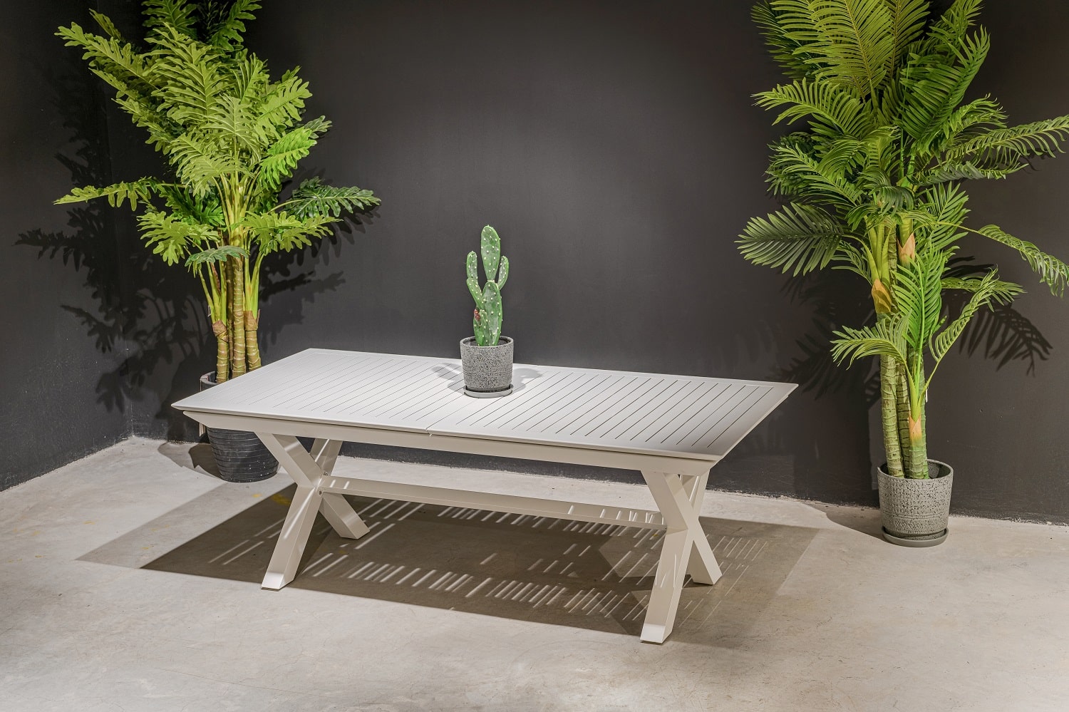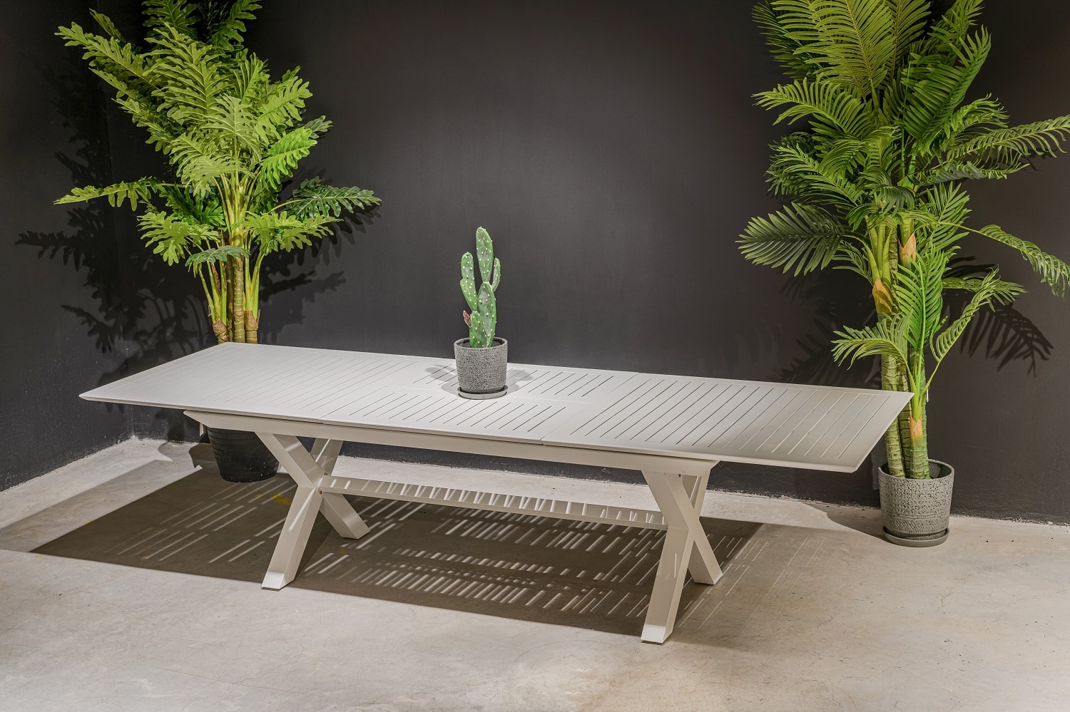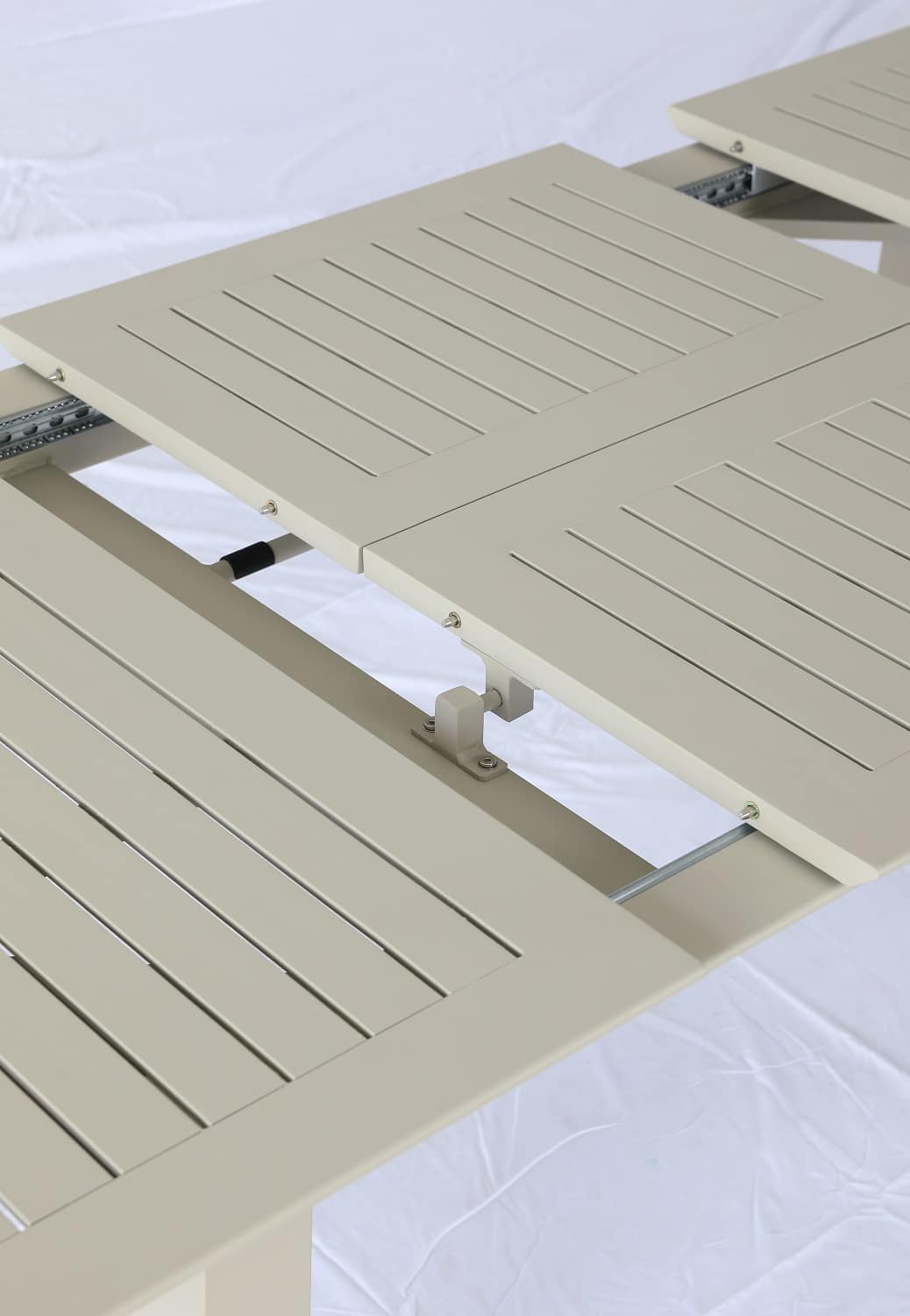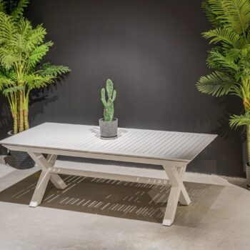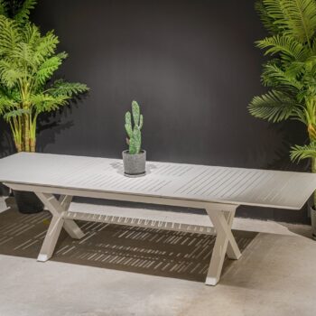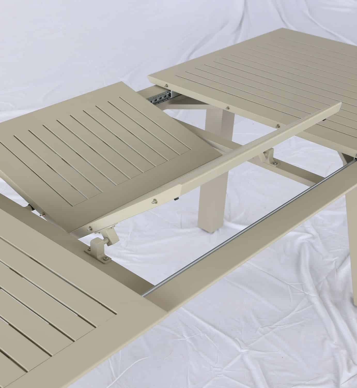 שולחן נפתח העשוי אלומיניום “אל חלד” במידה 175*100 ס”מ, נפתח ל-240 ס”מ.