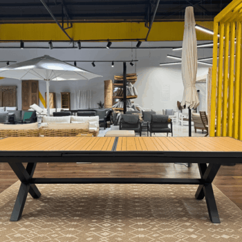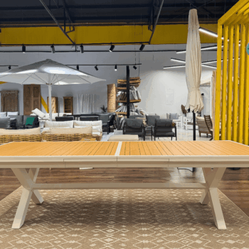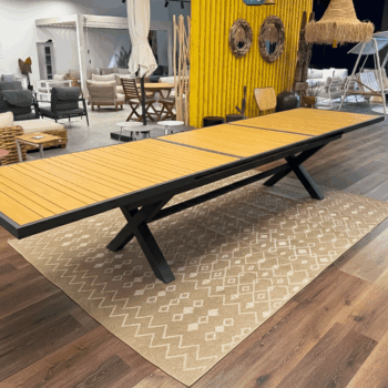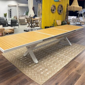 שולחן נפתח העשוי אלומיניום “אל חלד” במידה 295*100 ס”מ, נפתח ל-400 ס”מ.