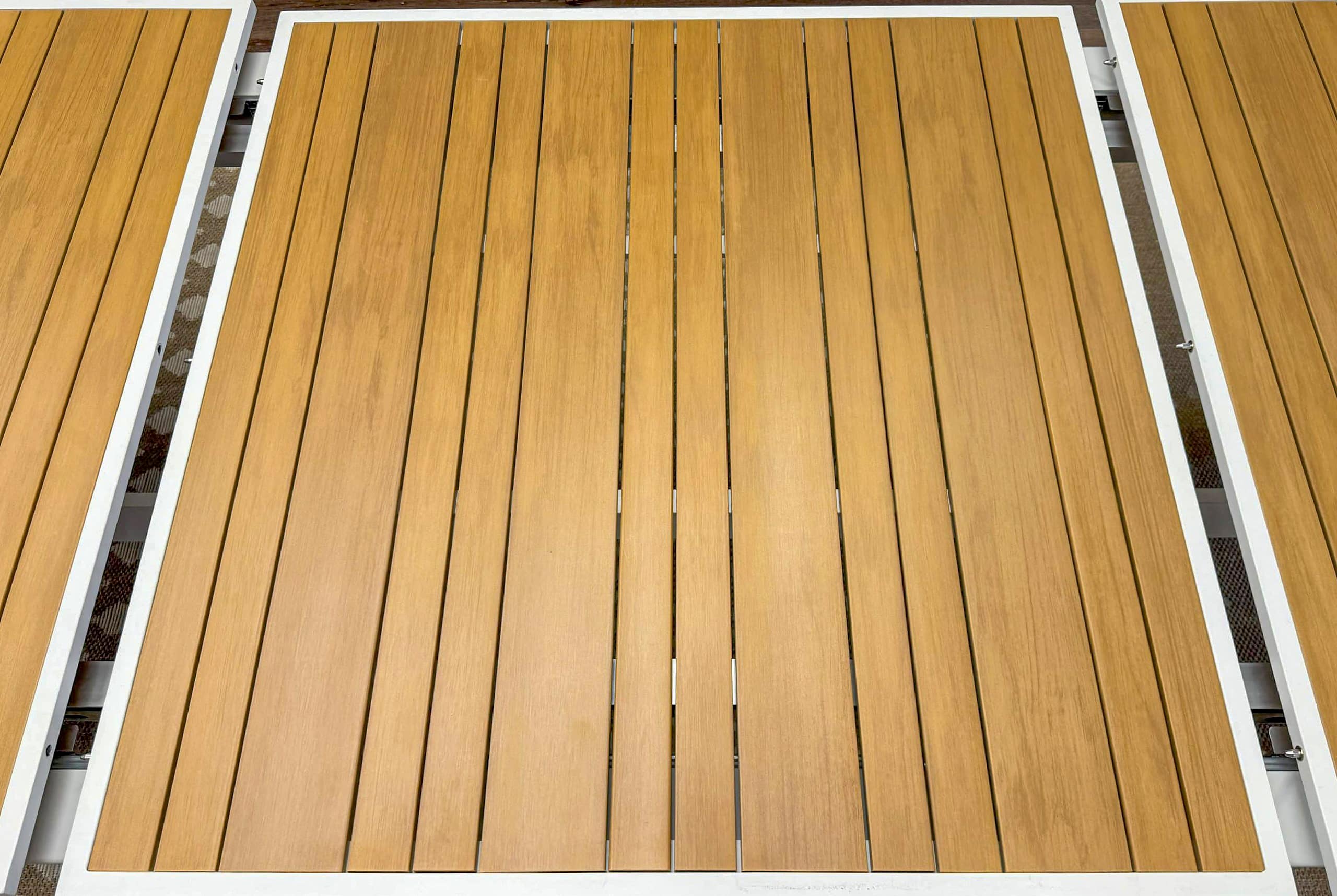 שולחן מעוצב בשילוב PVC דמוי עץ איכותי דגם דלהי דמוי עץ.