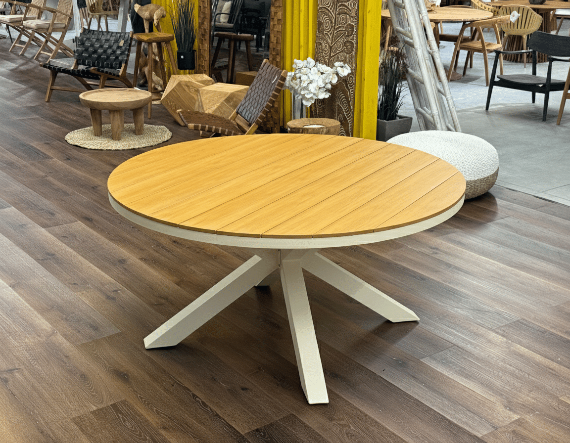 שולחן עגול העשוי אלומיניום “אל חלד” בקוטר 150 ס”מ.