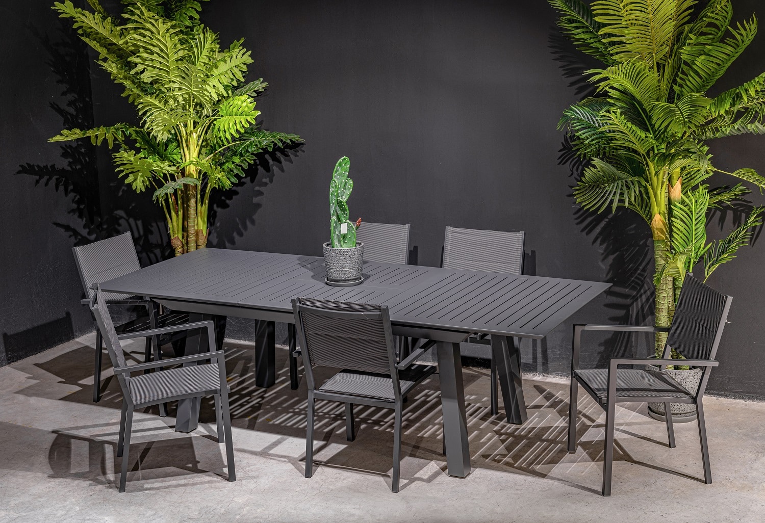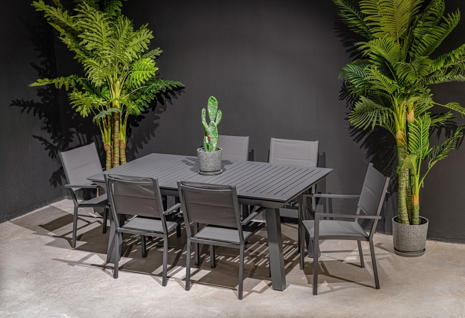 שולחן נפתח העשוי אלומיניום “אל חלד” במידה 175*100 ס”מ, נפתח ל-240 ס”מ.