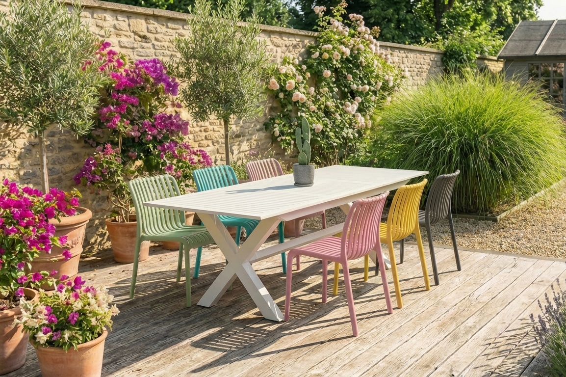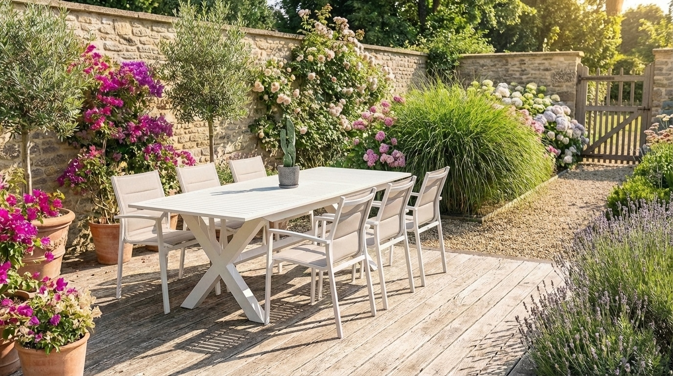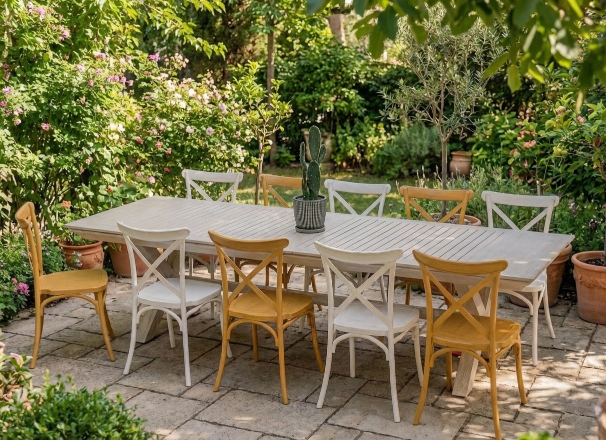 שולחן נפתח העשוי אלומיניום “אל חלד” במידה 214*100 ס”מ, נפתח ל-300 ס”מ.