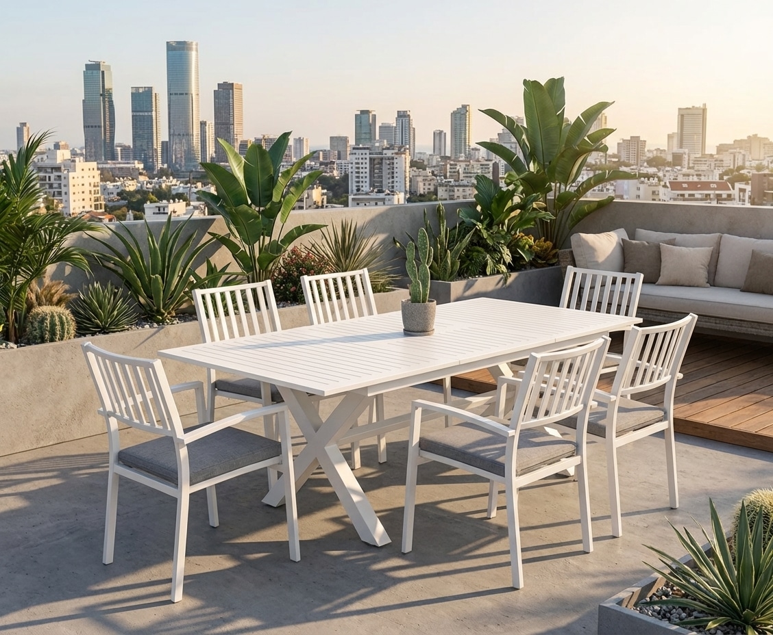 שולחן מעוצב דגם דלהי בשילוב 6 כיסאות לבחירה.