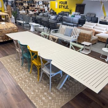 שולחן אלומיניום דגם דלהי 400 + 8 כיסאות מדגם הריטאז’ במבחר צבעים לבחירה.
