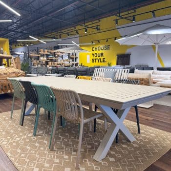 שולחן אלומיניום דגם דלהי 400 + 8 כיסאות מדגם דיווה במבחר צבעים לבחירה.