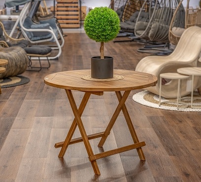 שולחן טיק מעוצב דגם מודנה עגול מגיע ב 3 גדלים.
