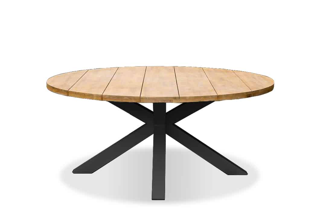 שולחן אלומיניום “אל חלד” בשילוב משטח עץ שיטה מלא עליון בקוטר 178 ס”מ.