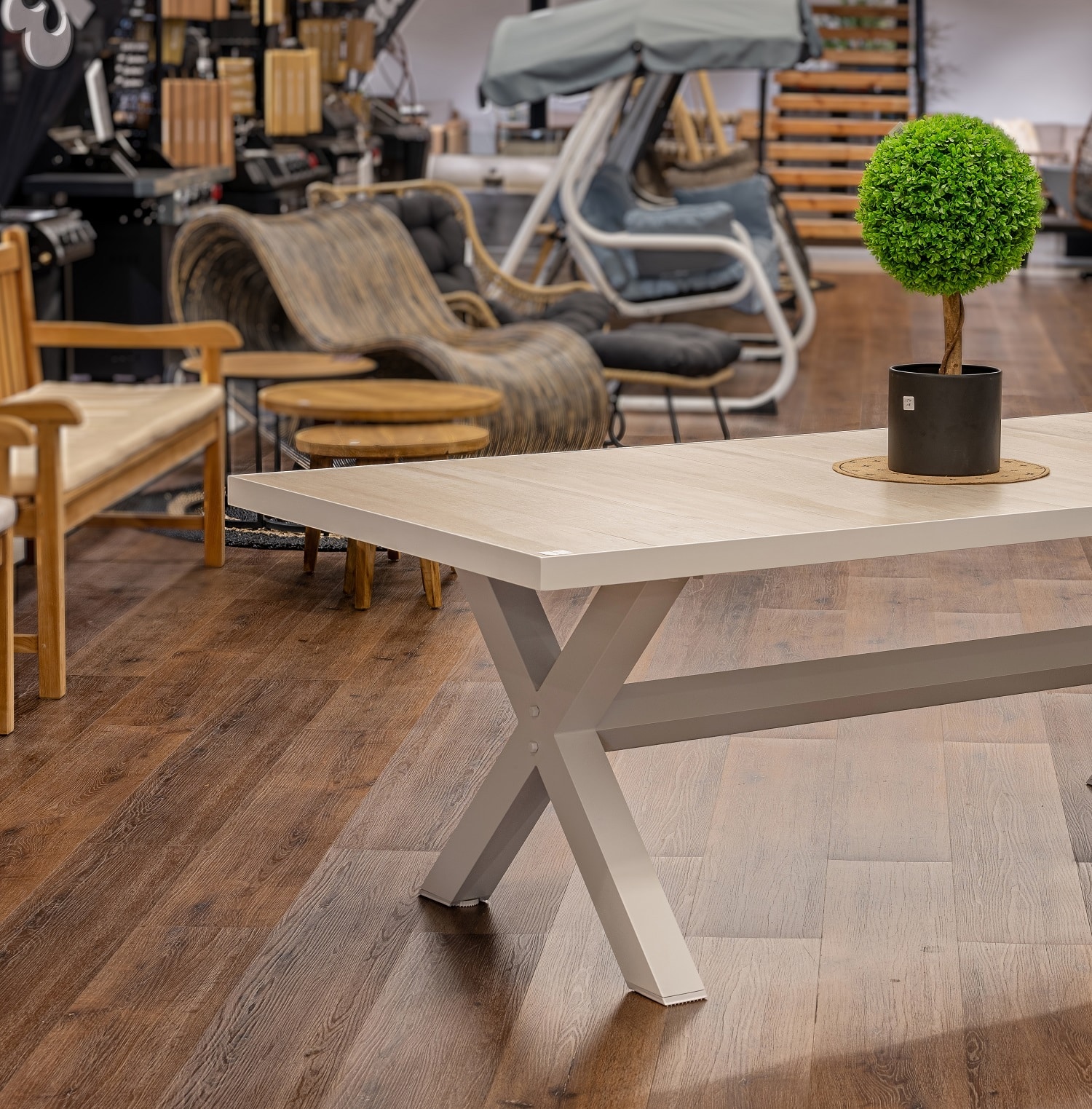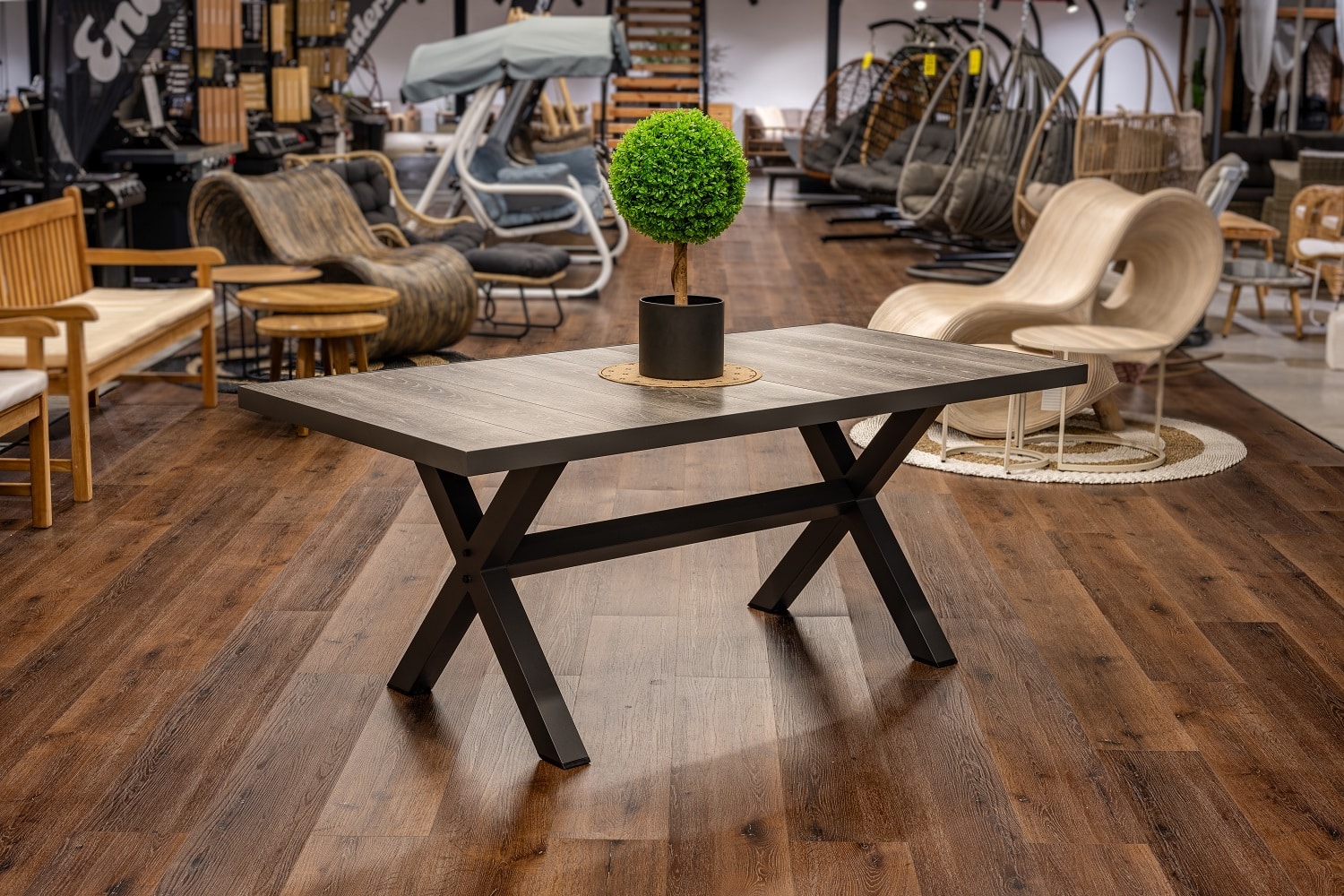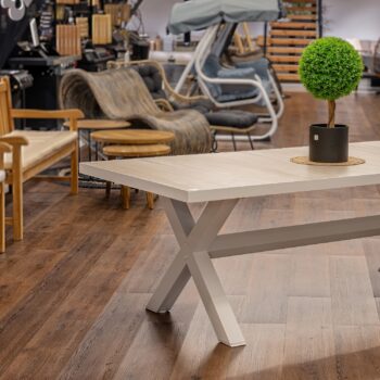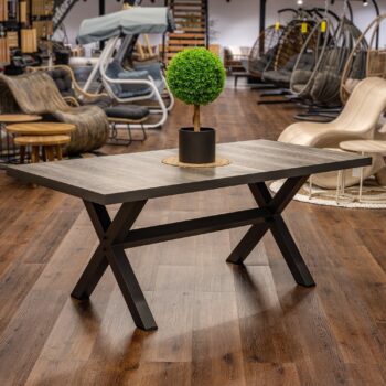 שולחן מעוצב עם רגלי X.