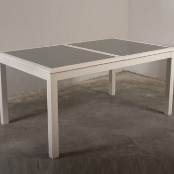 מסגרת לבנה, זכוכית אפורה בהירה או מסגרת אפורה כהה, זכוכית אפורה כהה. שולחן אפור כהה אזל זמנית.