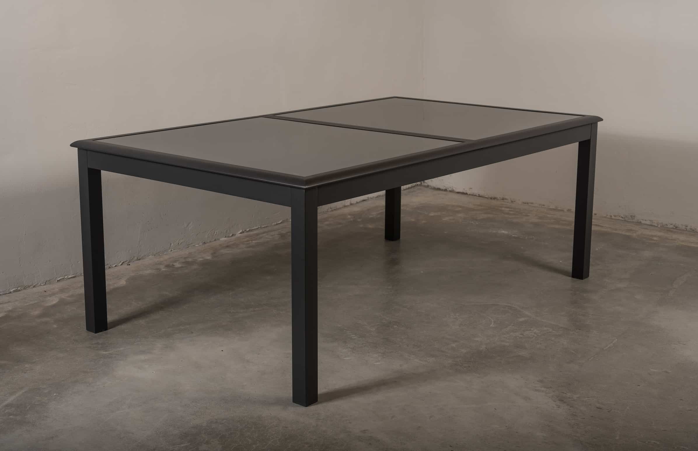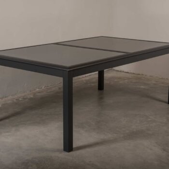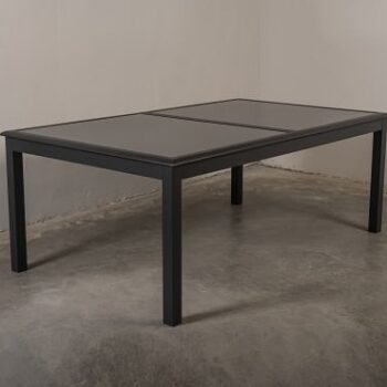 שולחן האוכל בנוי מאלומיניום “אל חלד” מחוזק עם הגנה ותמיכה במסגרת השולחן.