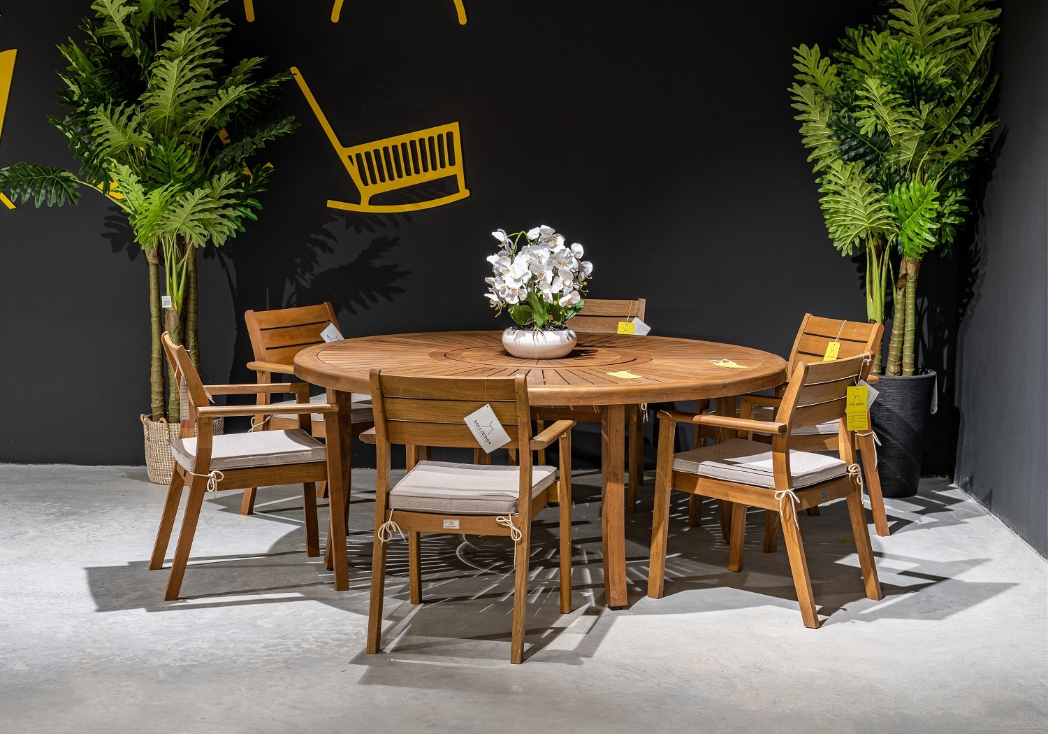 מומלץ למקם את הסט במקום מוצל ומקורה , מדי פעם יש לשמן בשמן טיק מתאים למניעת סדקים ושמירה על העץ.