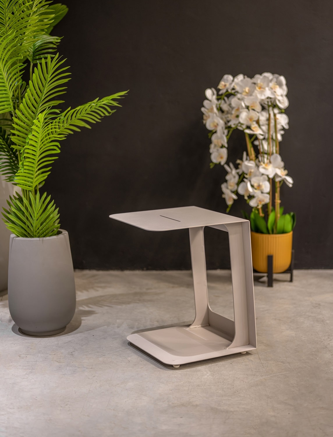 שולחן צד מעוצב מאלומיניום “אל חלד”.