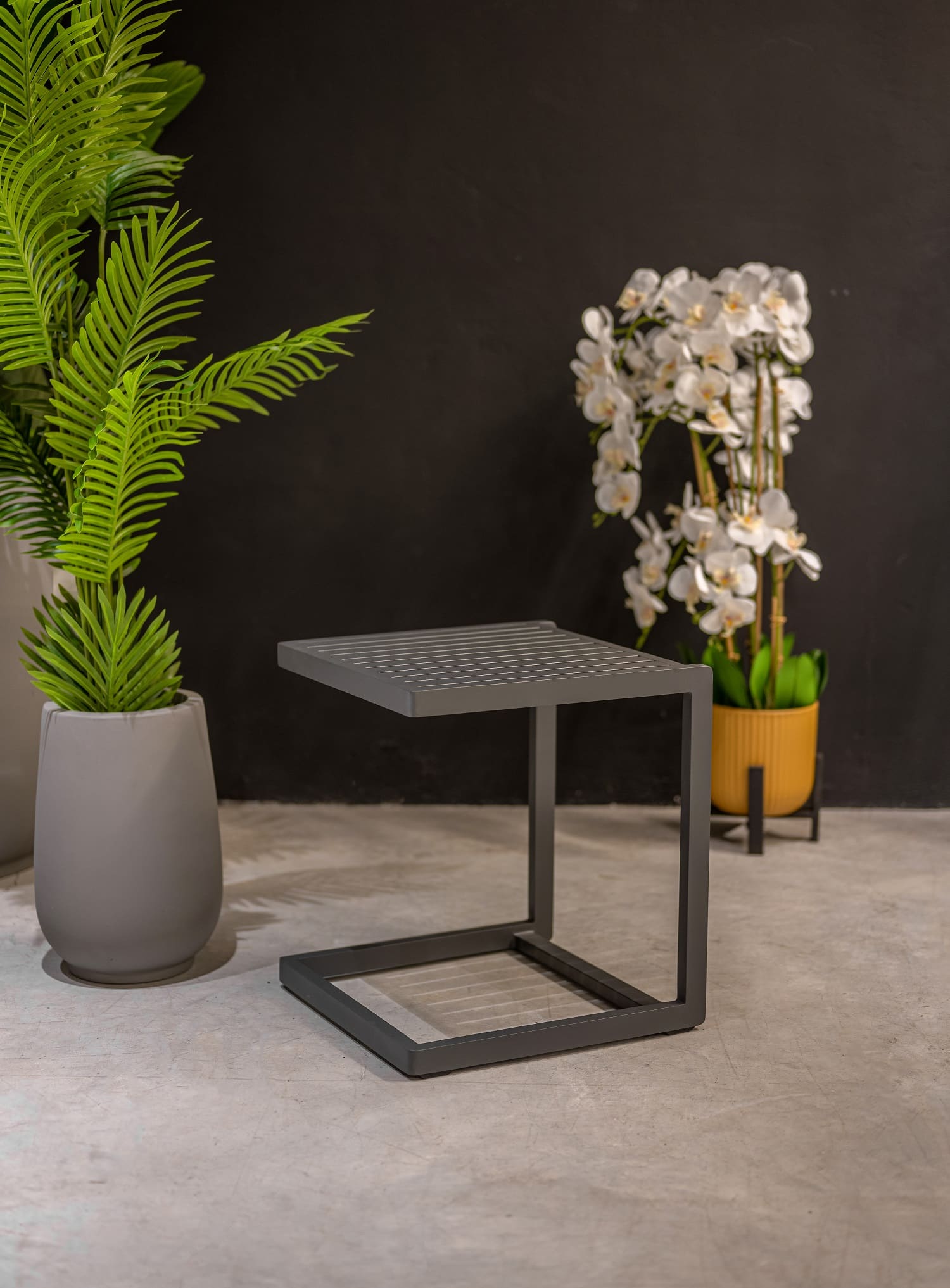 שולחן צד מעוצב מאלומיניום “אל חלד”.