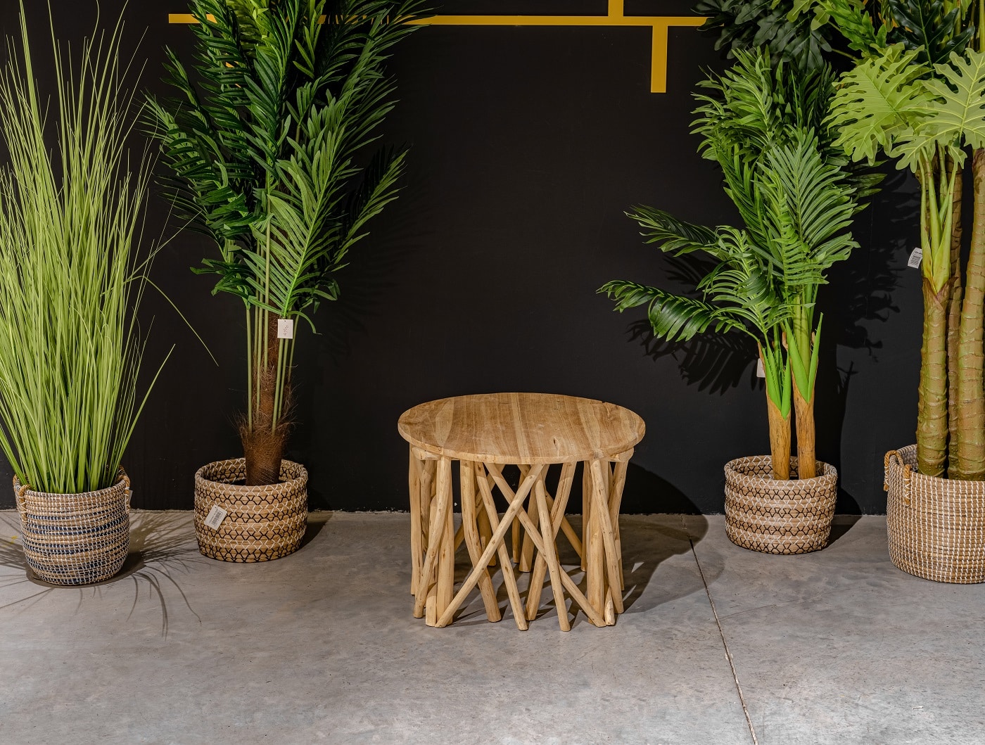 שולחן קפה מפואר ומעוצב מגזעי טיק אינדונזי בשילוב משטח עליון מעץ טיק ממוחזר.