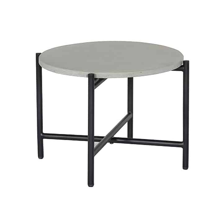 השולחן בנוי ממתכת צבועה בתנור בשילוב משטח בטון מוחלק.
