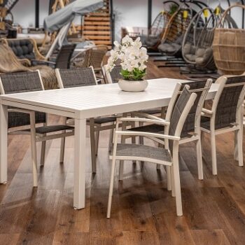 הסט כולל שולחן ג’ט בשילוב 6 כיסאות מדגם מונאקו.
