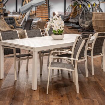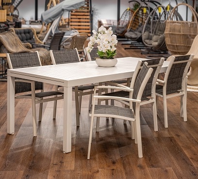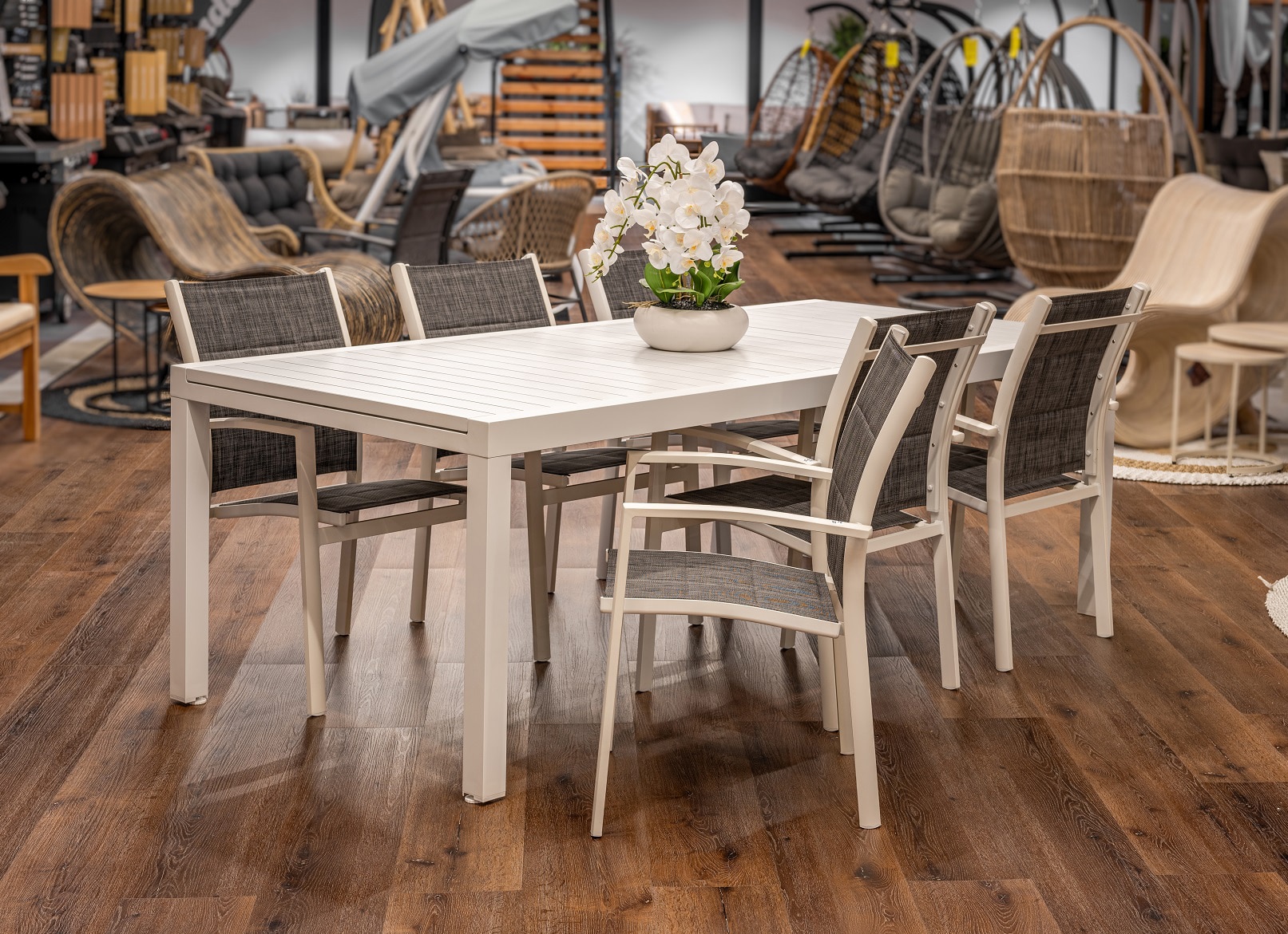 הסט כולל שולחן ג’ט בשילוב 6 כיסאות מדגם מונאקו.