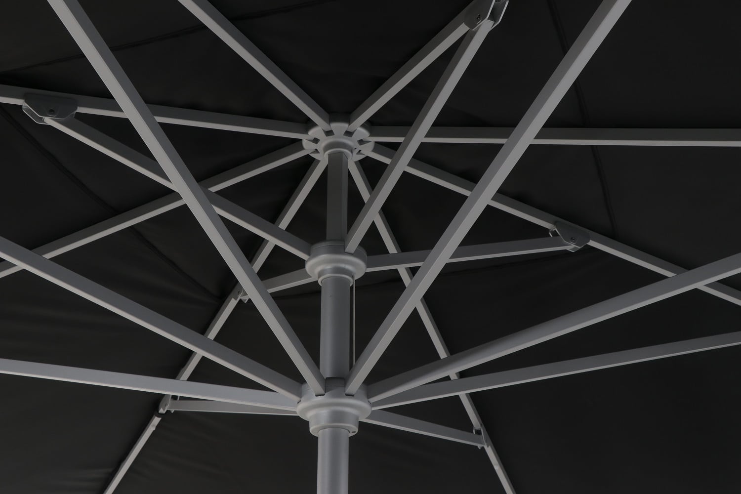 עמוד אלומיניום עבה (60 מ”מ קוטר!) בשילוב 8 צלעות אלומיניום חזקות במיוחד אשר מוסיפות עמידות לשמשייה.