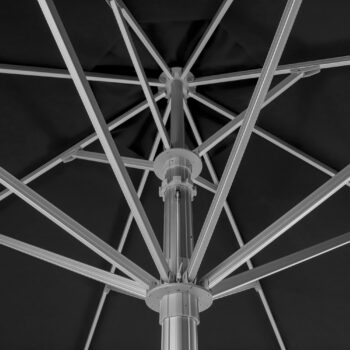 עמוד אלומיניום עבה במיוחד (100 מ”מ קוטר!) בשילוב 8 צלעות (דו שכבתיות) אלומיניום חזקות במיוחד אשר מוסיפות עמידות לשמשייה.