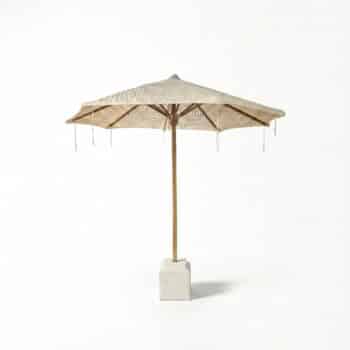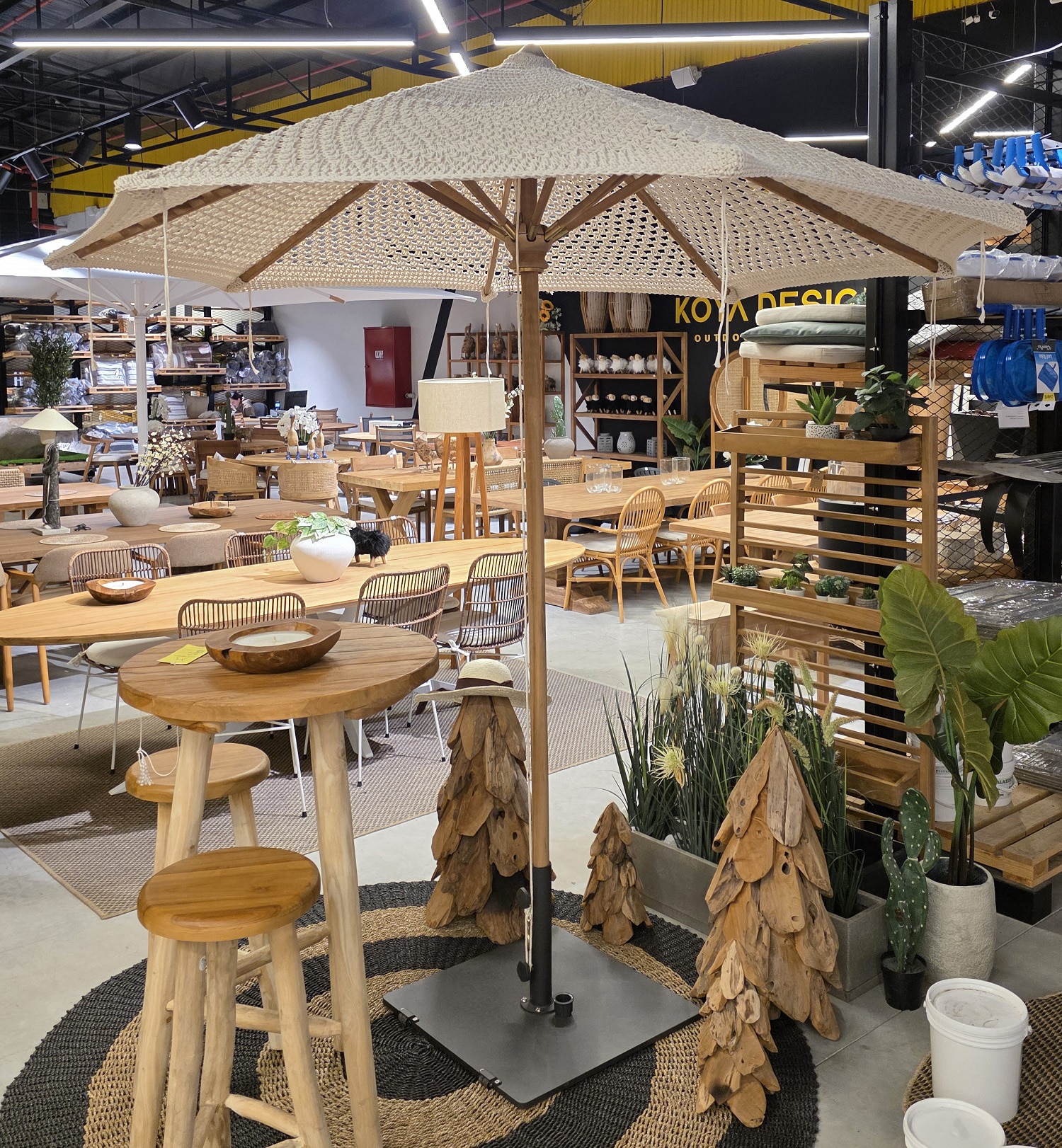 שמשייה בקוטר 250 ס”מ אשר עשויה מעץ טיק מלא, המחיר כולל בסיס שמשייה מעוצב תוצרת אינדונזיה.