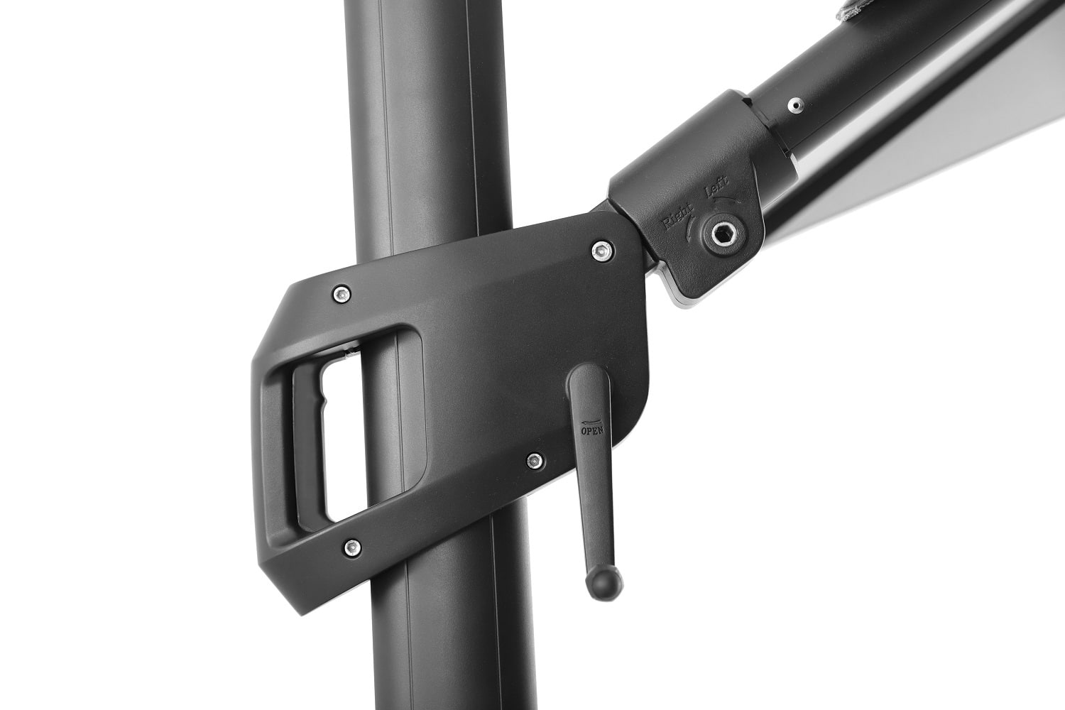 עמוד אלומיניום עבה בשילוב 8 צלעות אלומיניום חזקות במיוחד אשר מוסיפות עמידות לשמשייה.