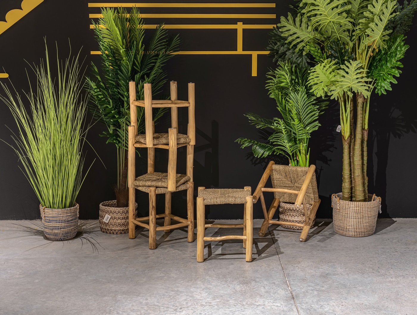בנוי מעץ טיק אינדונזי בשילוב ראטן סינטטי דמוי טבעי.